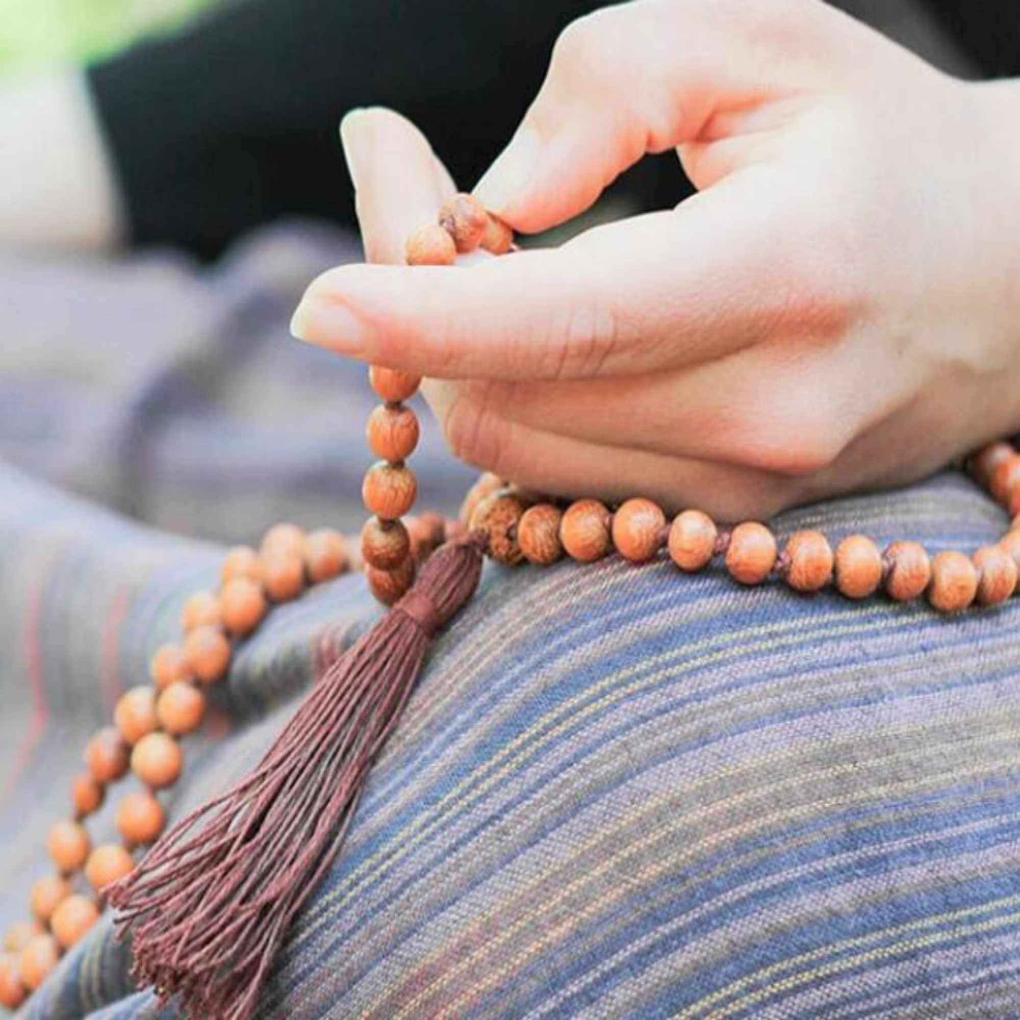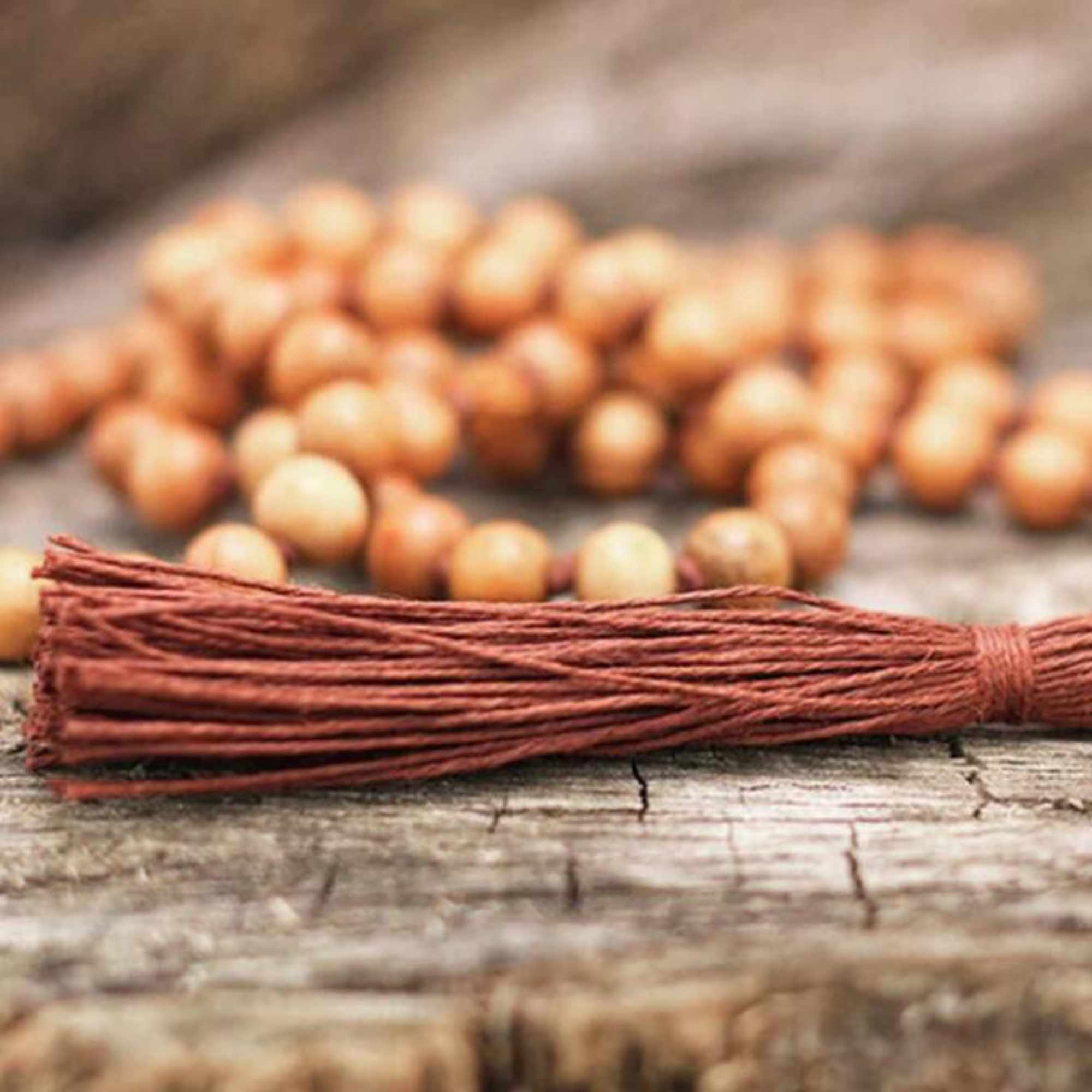 This mala is slow-crafted using organic hemp cord, and the absolute finest A-grade Dark Rosewood beads, individually inspected and selected.
