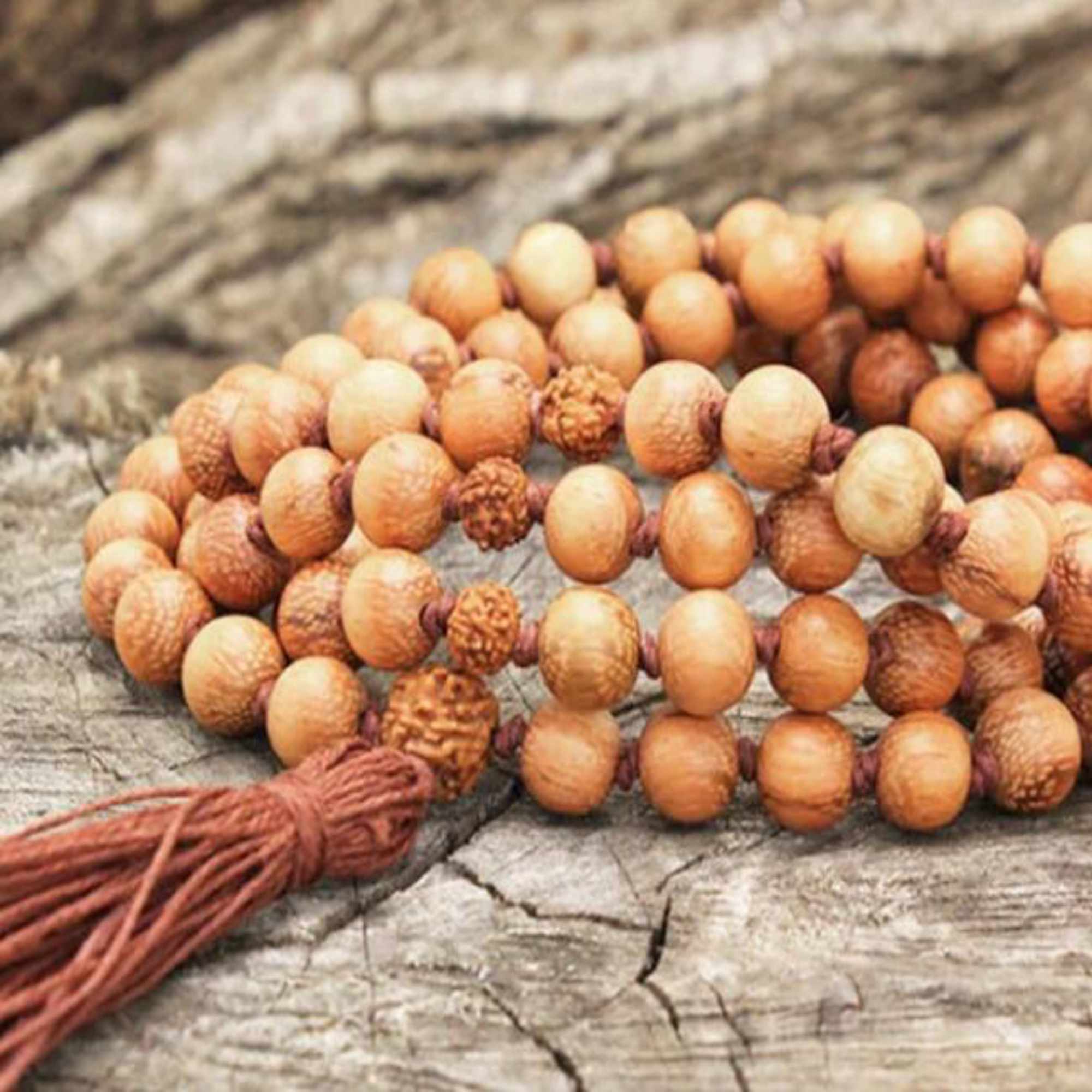 This artisan mala features:
