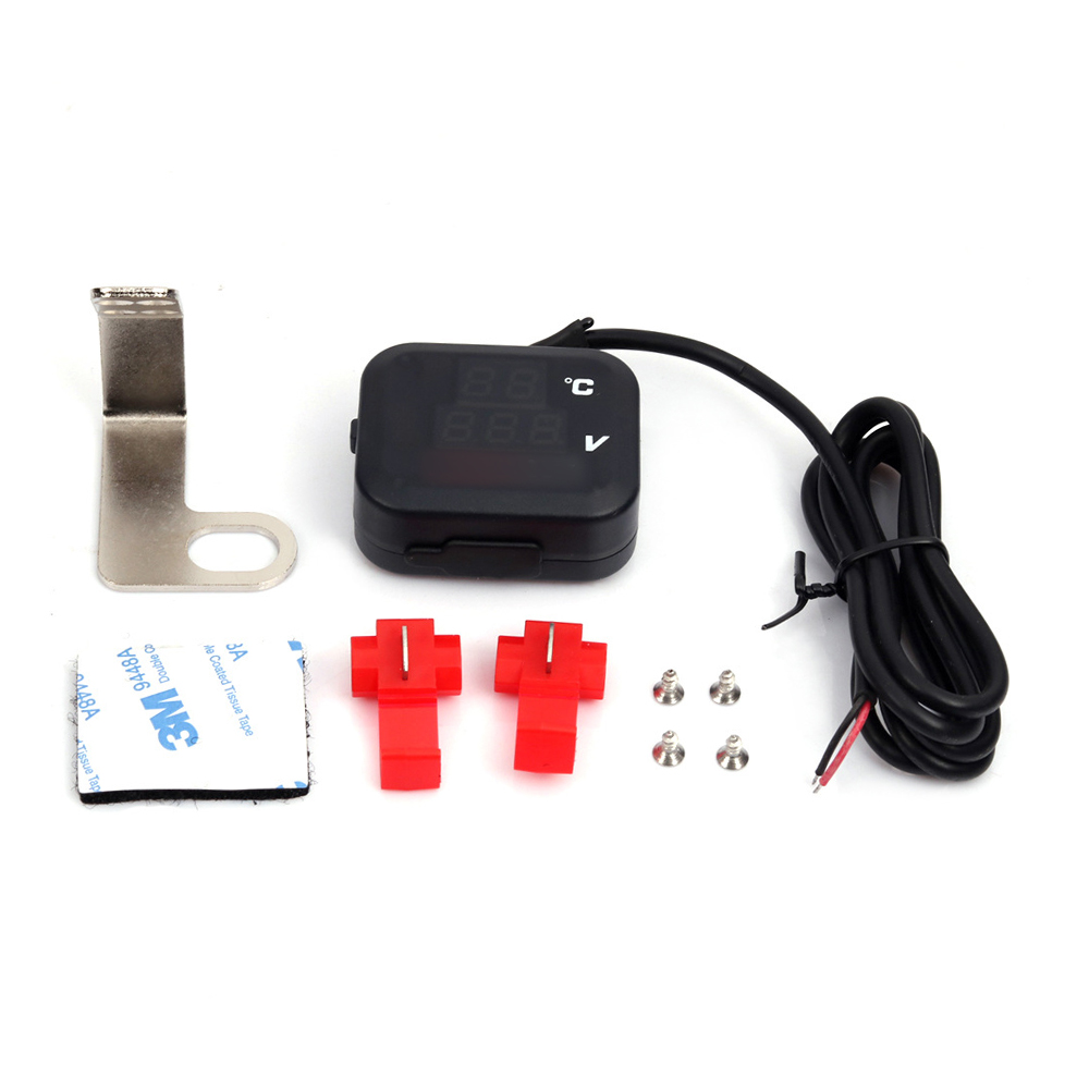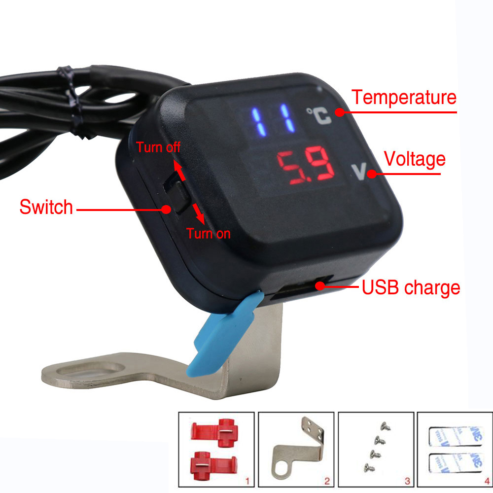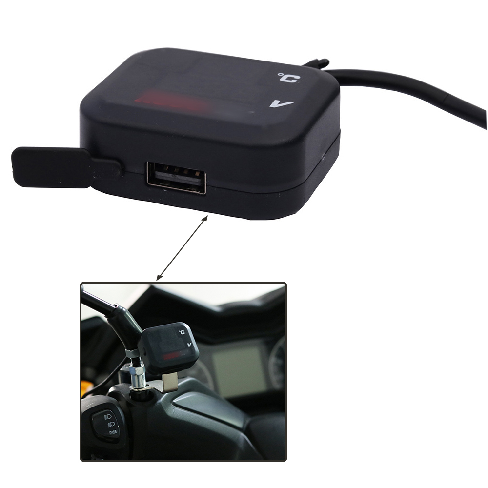 Motorcycle Air Temperature Gauge Voltmeter Voltage Thermometer Meter USB Charge