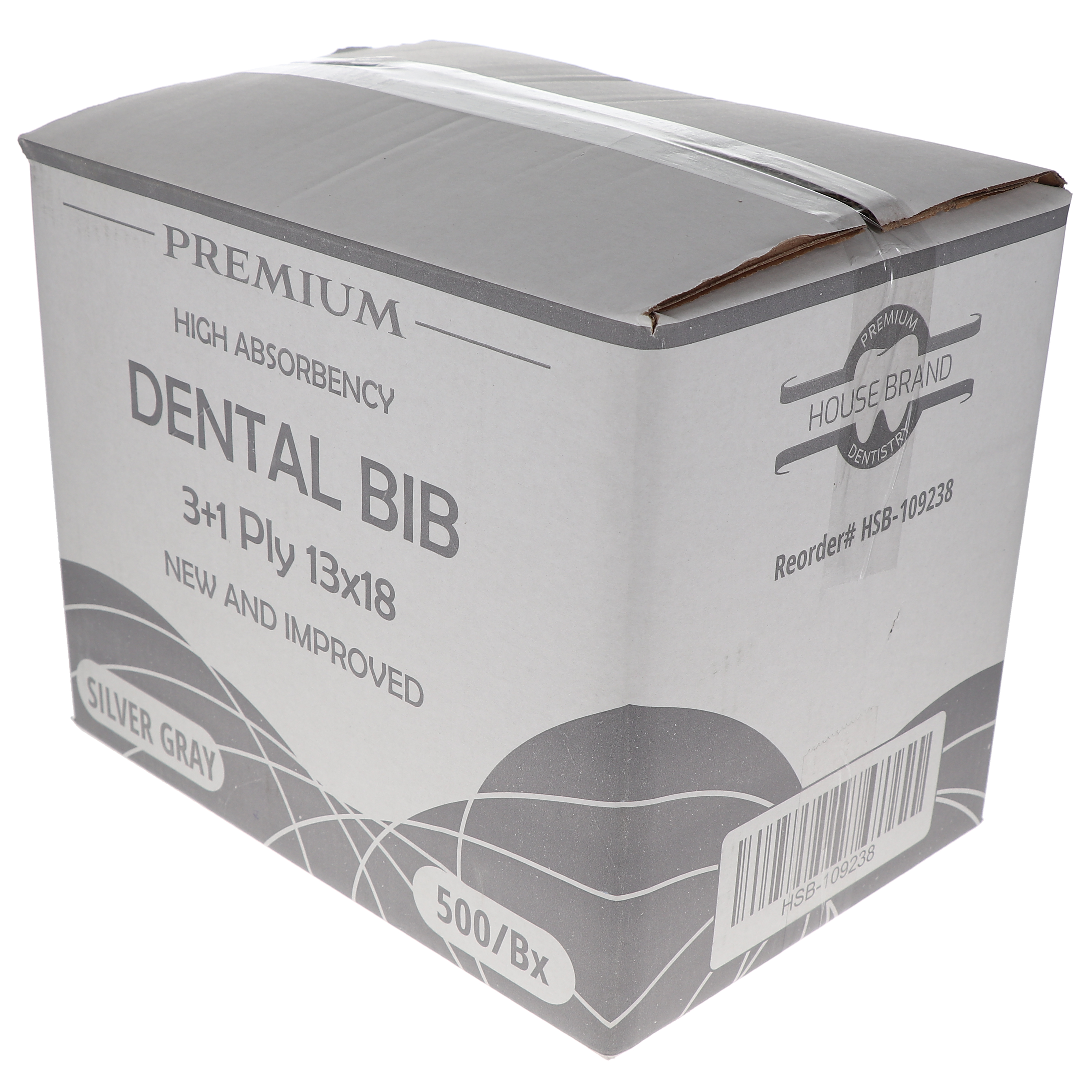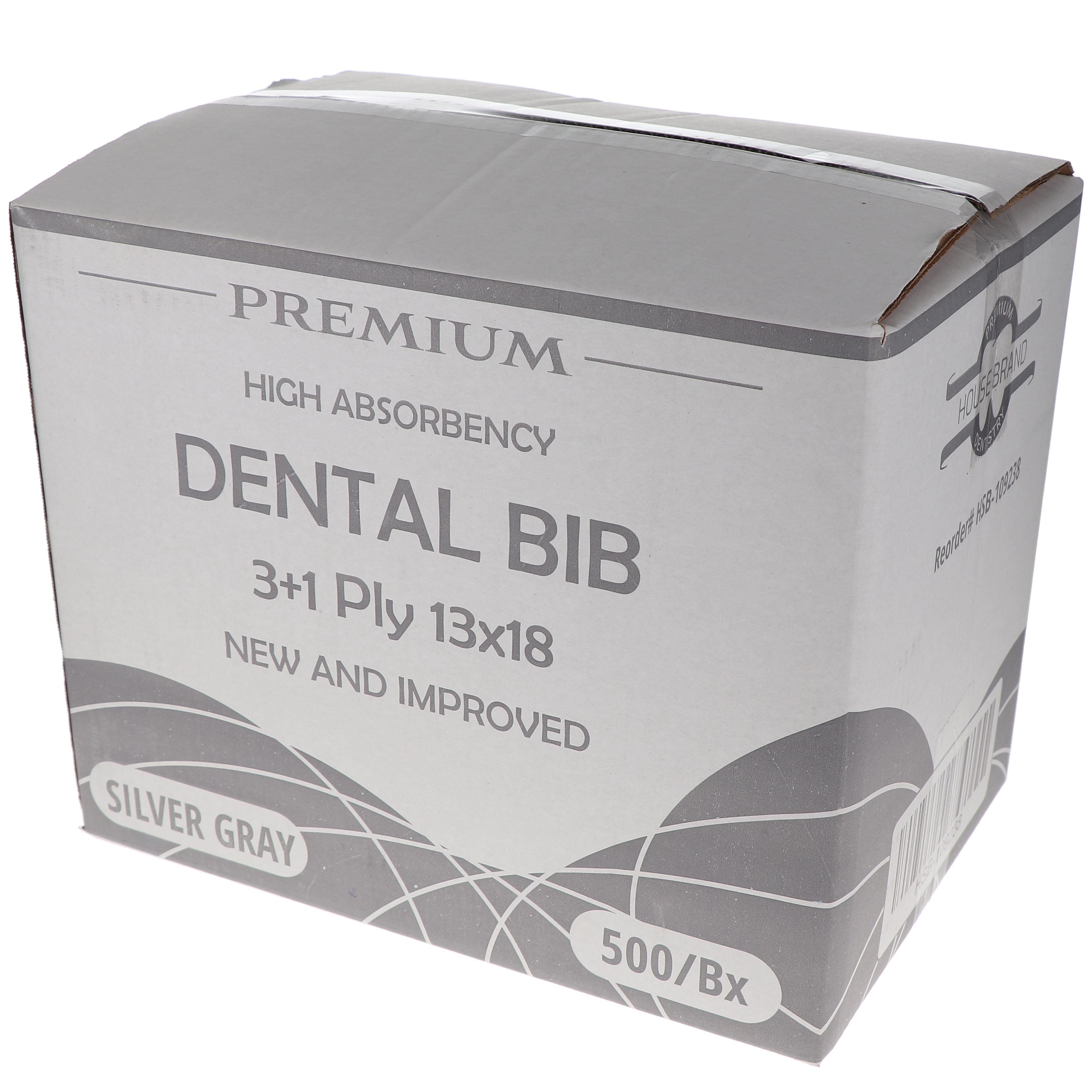 House Brand Dentistry Silver Gray Dental Patient Bibs Plain Rectangle, 13" x 18", 3-Ply Paper/1-Ply Poly, 500/Case.