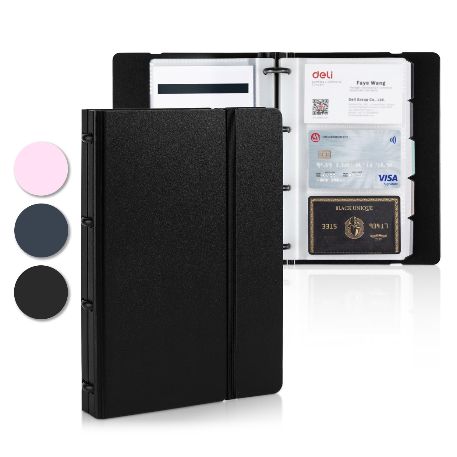 Deli Business Card Book is Ideal for home and office desktop business card organization and of organizing business cards, credit and debit cards, gift cards, membership cards.