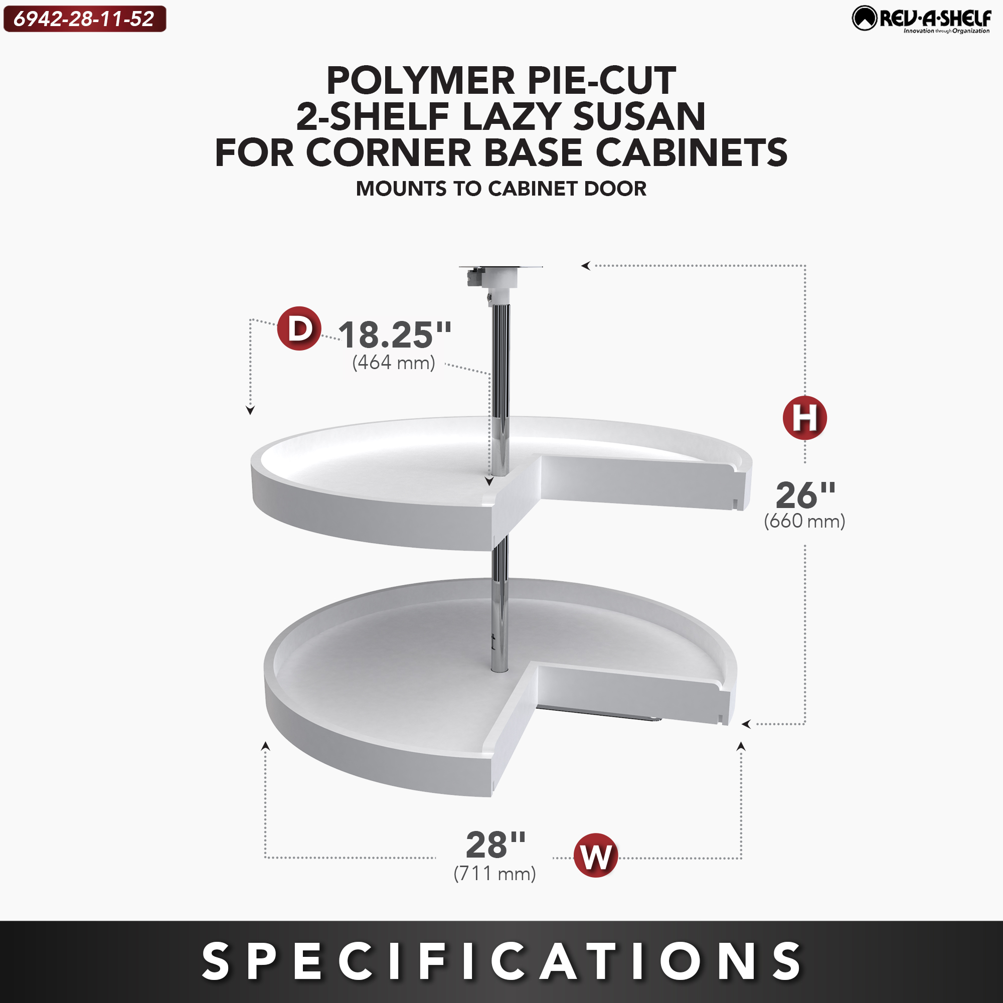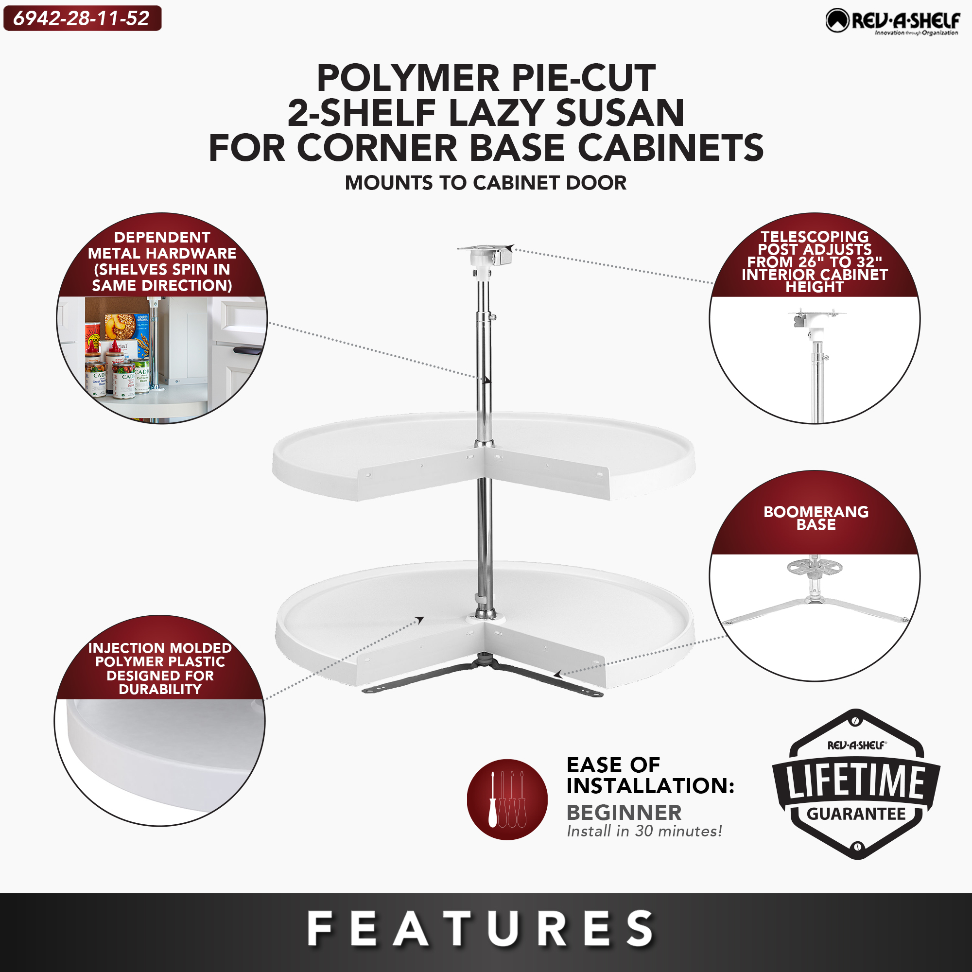 Rev-A-Shelf's polymer lazy susans are revered as the number 1 on the market. Whether you are replacing an old unit or just adding a corner cabinet lazy susan organizer to your lower or corner base cabinet, you will not be disappointed with the exceptional design and the durable rotating hardware that makes installation simple.