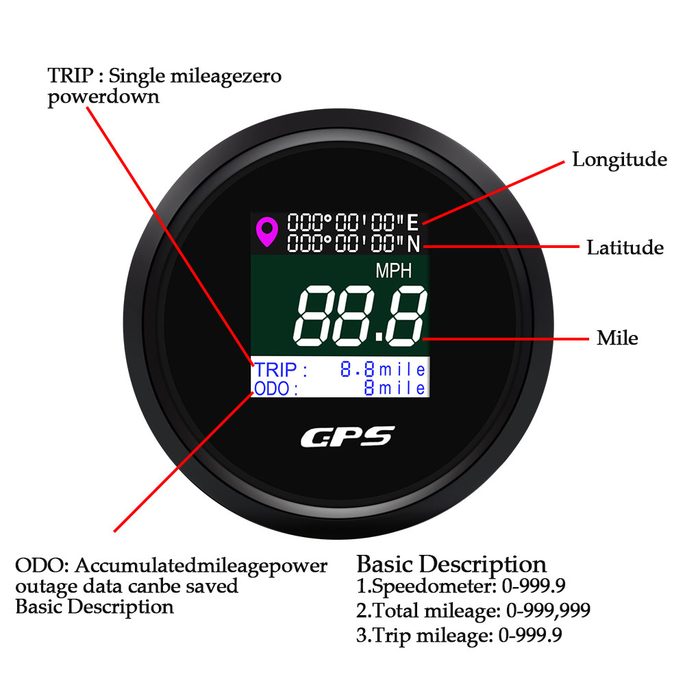 - Anzeigebereich: 0 ~ 999 (MPH, Knoten, km/h einstellbar)