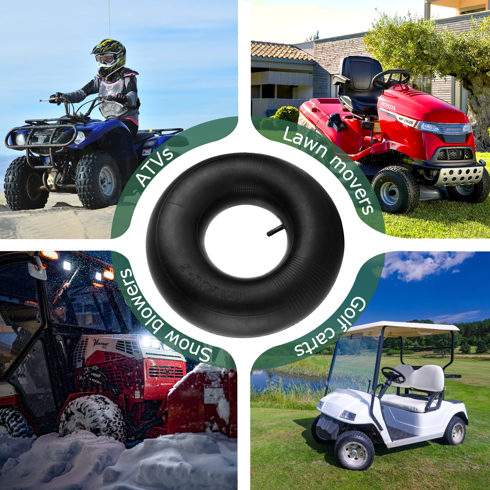 Pefect Fit: Replacement Tire Inner tubes for 15x6.00-6" Tires. This replacement inner tubes universal fit for 15x6.00-6" tires/wheels (15"-15.5" outside diameter, 6" width). Also called as 15x600-6,15x5.00-6,15X6-6, 600-6, 650-6,6.50-6, 5.30-6, 145/70-6.
