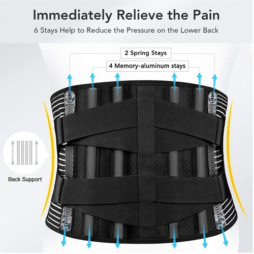 This Lumbar Support Belt is equipped with 4 steel stays and 2 steel springs, offering 360° stronger vertical support to the lower back. You can change the support steel bar according to your pain level.
