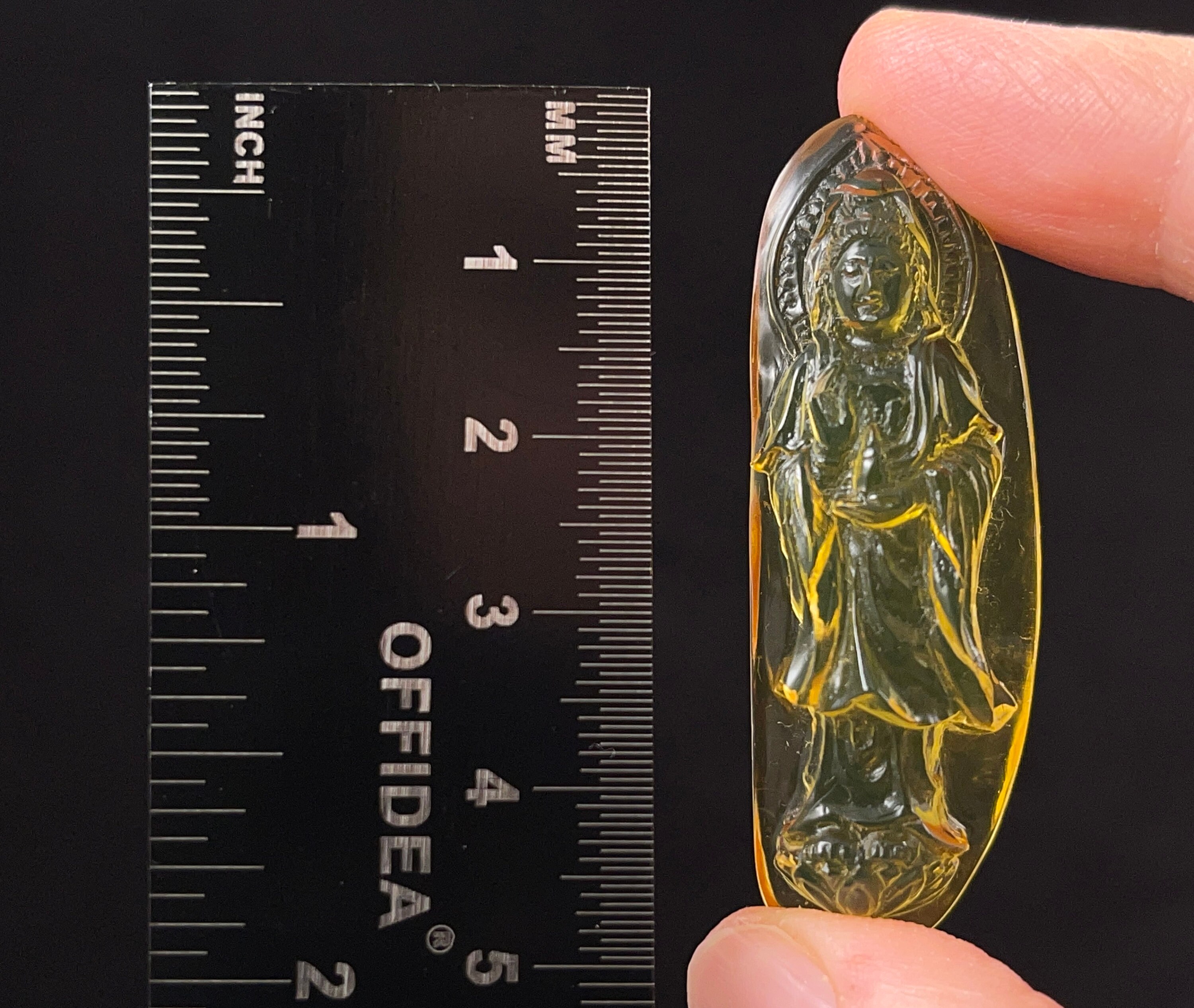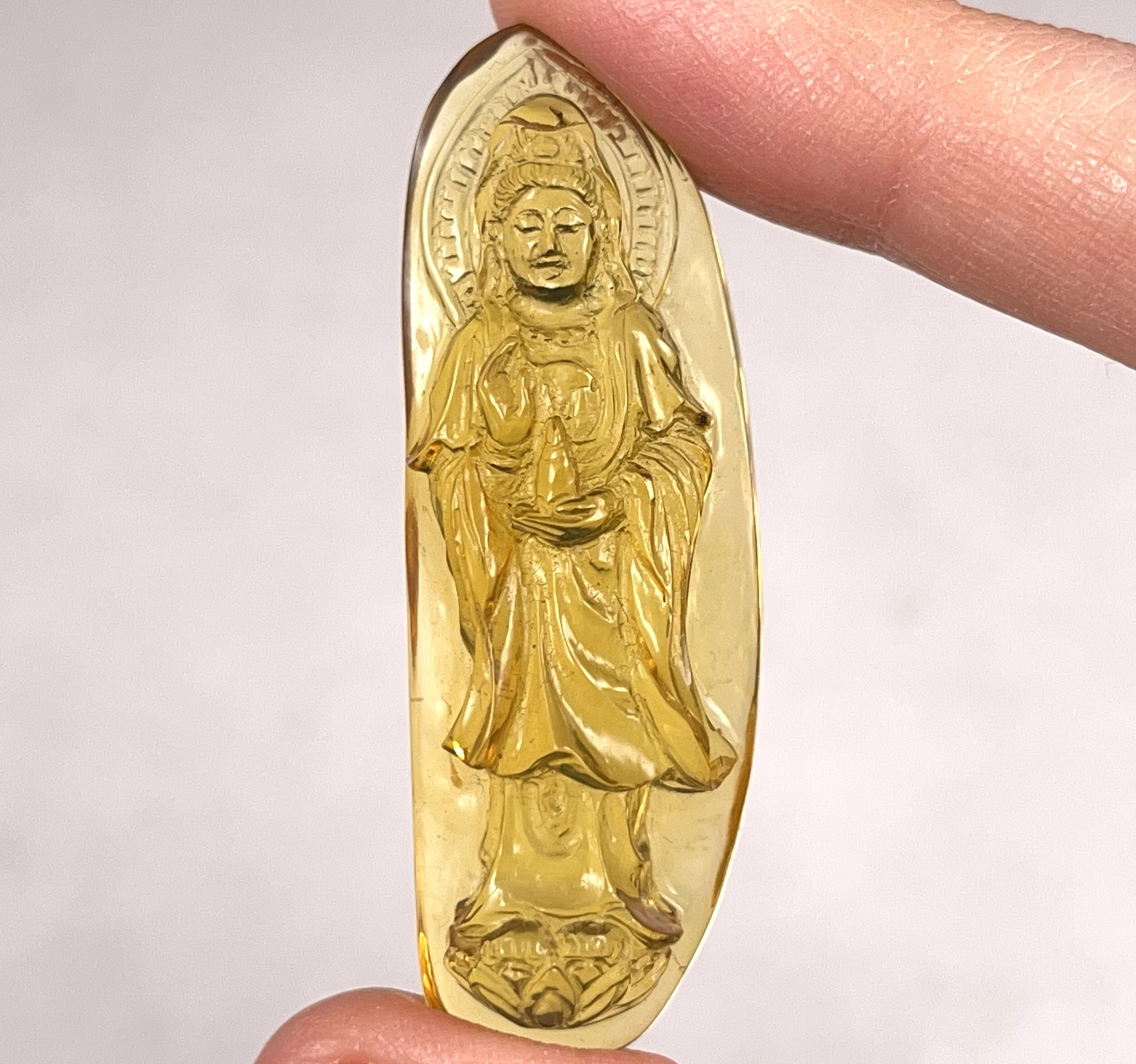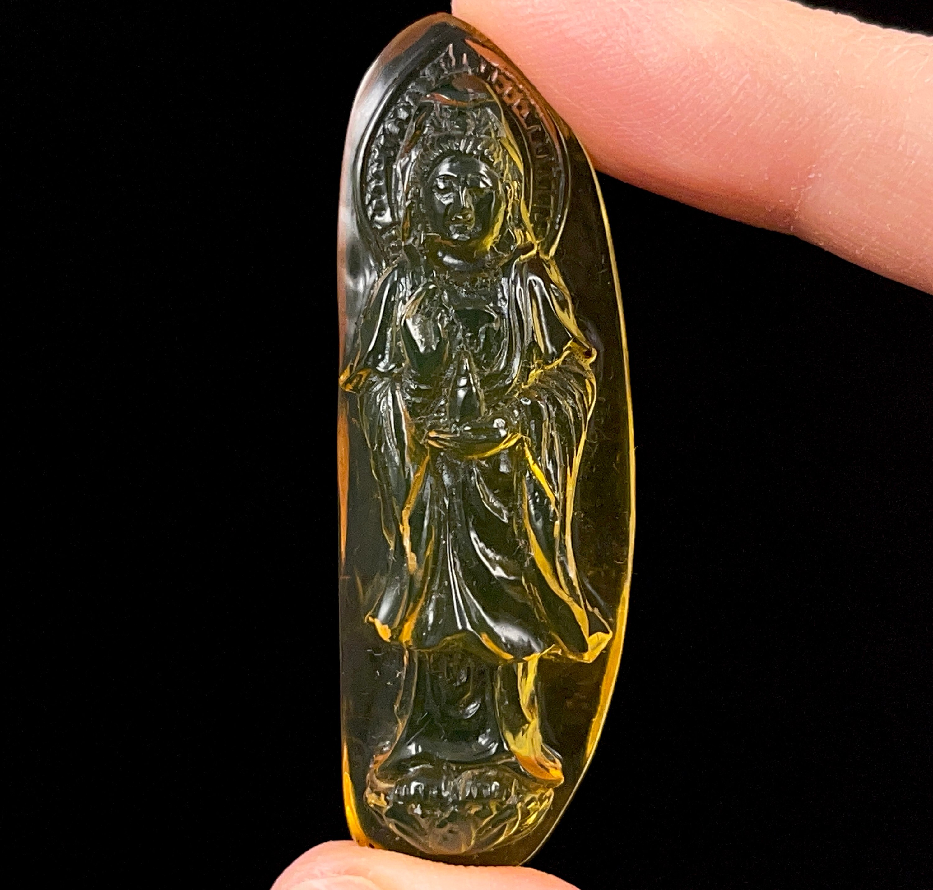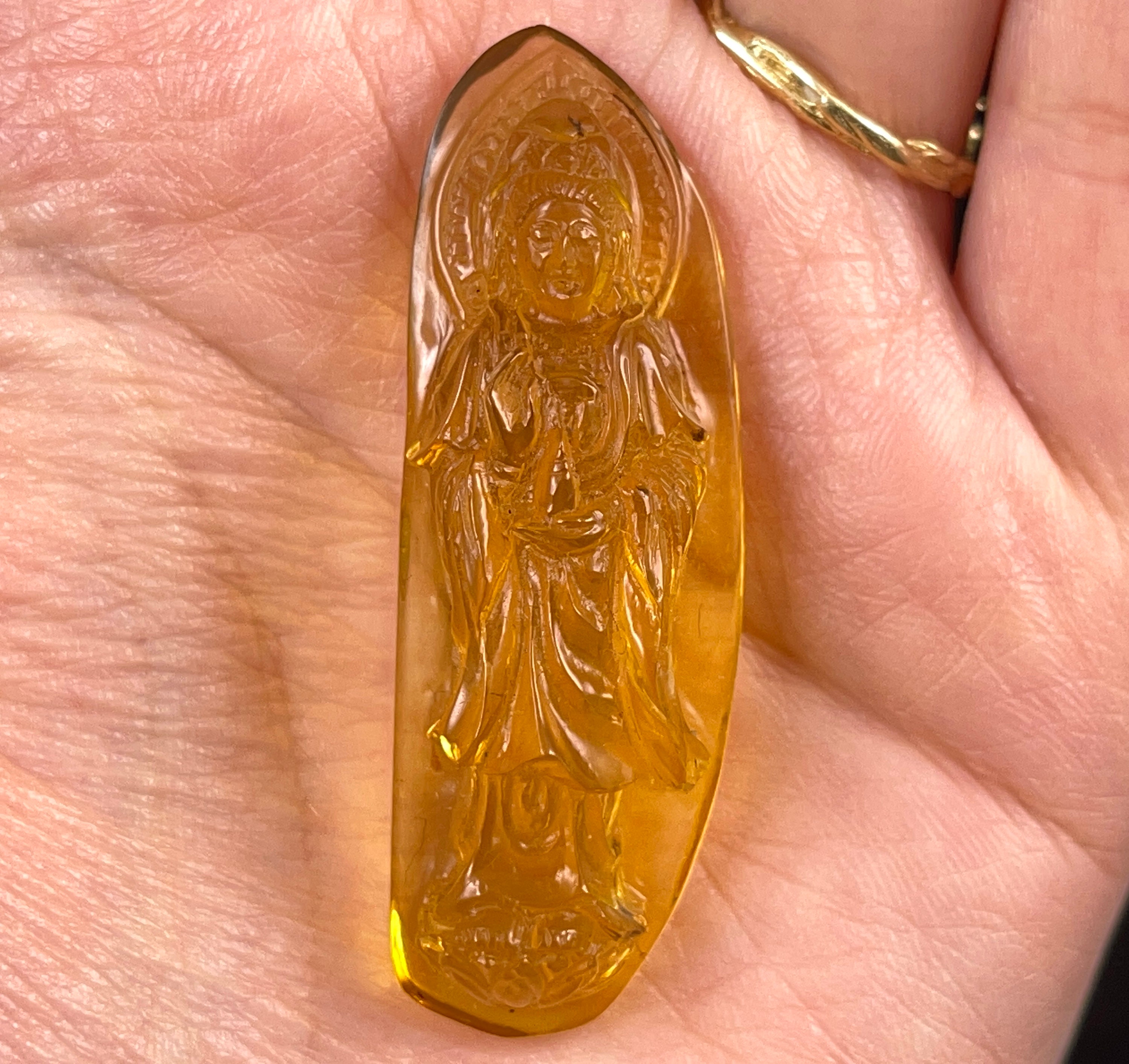 AMBER Crystal Kuan Yin - Carving, Gift, Home Decor, Healing Stones, 52674