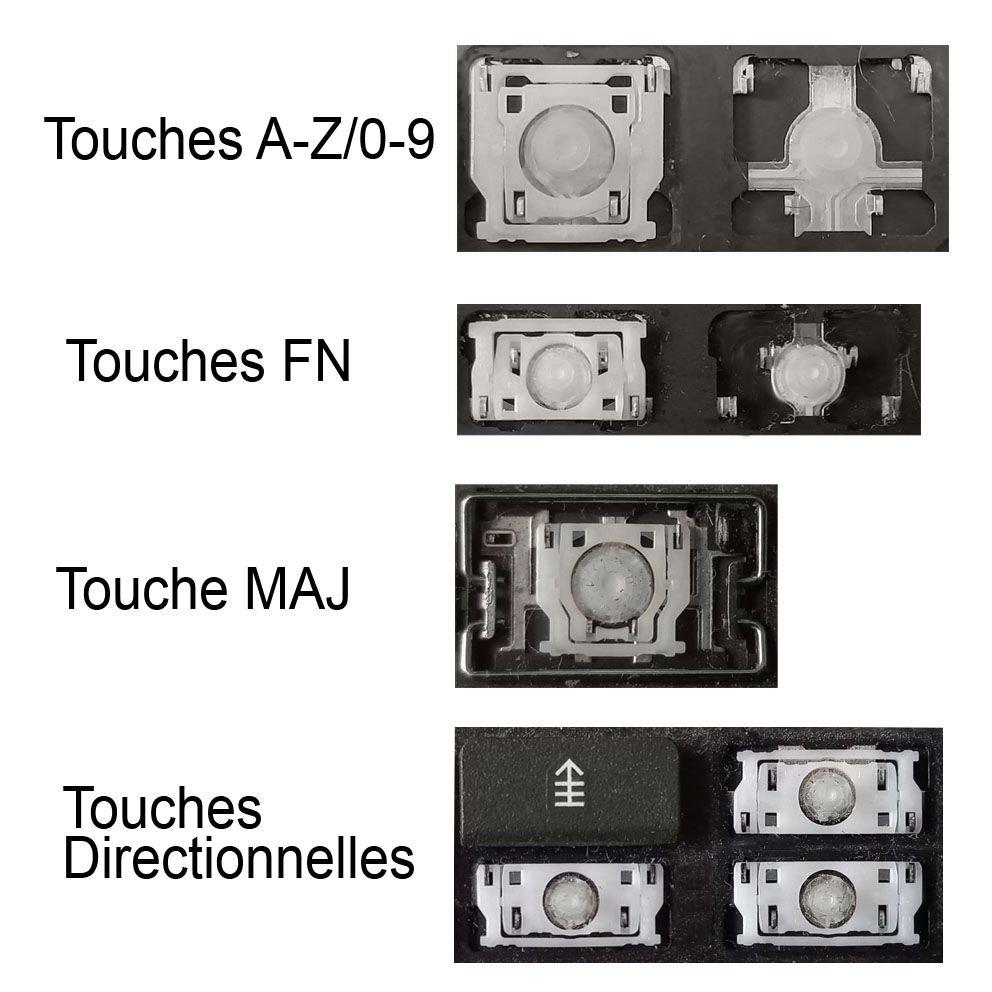 Merci de vous référer aux images pour éviter les erreurs. Les constructeurs font souvent appel à différents fabricants pour les claviers et il existe donc une multitude de mécanismes différents.