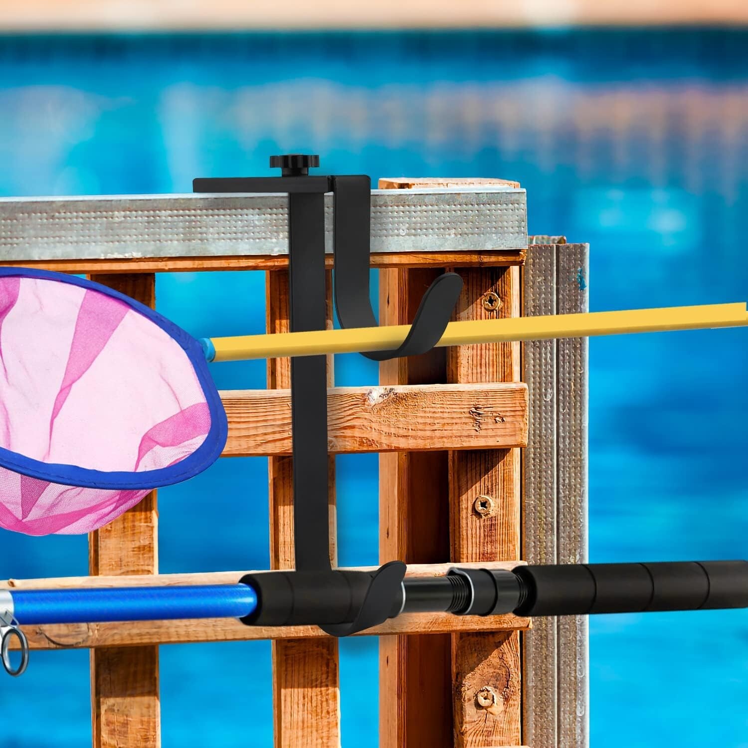 These pool pole hangers fit almost all pool fences and can be installed on wood, metal, or wall.