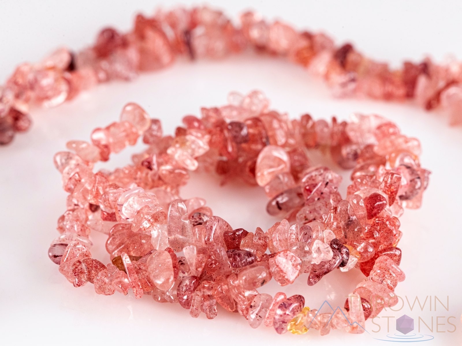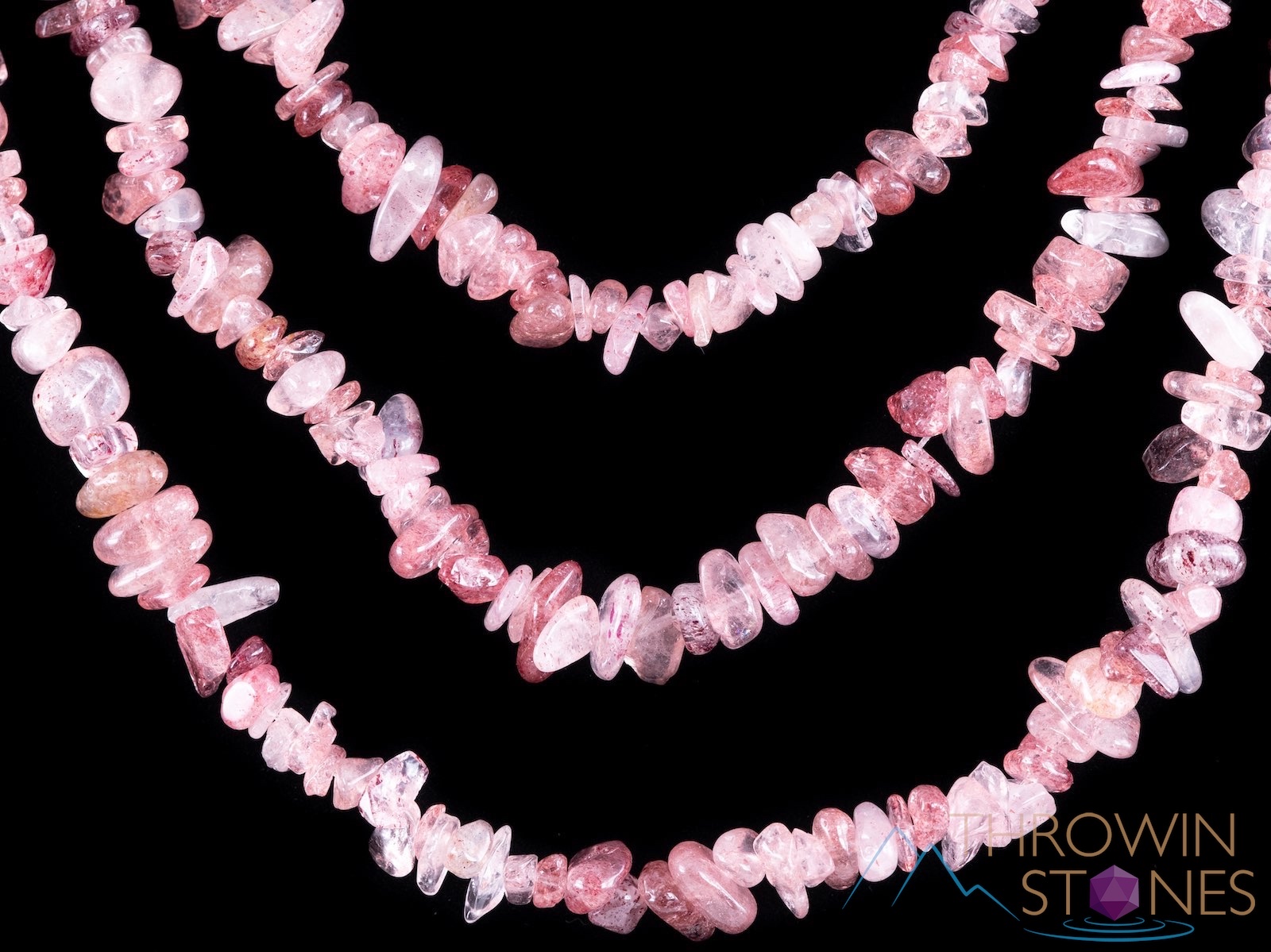 STRAWBERRY QUARTZ Tanzberry Crystal Long Necklace - Chip Beads - Jewelry, E1646