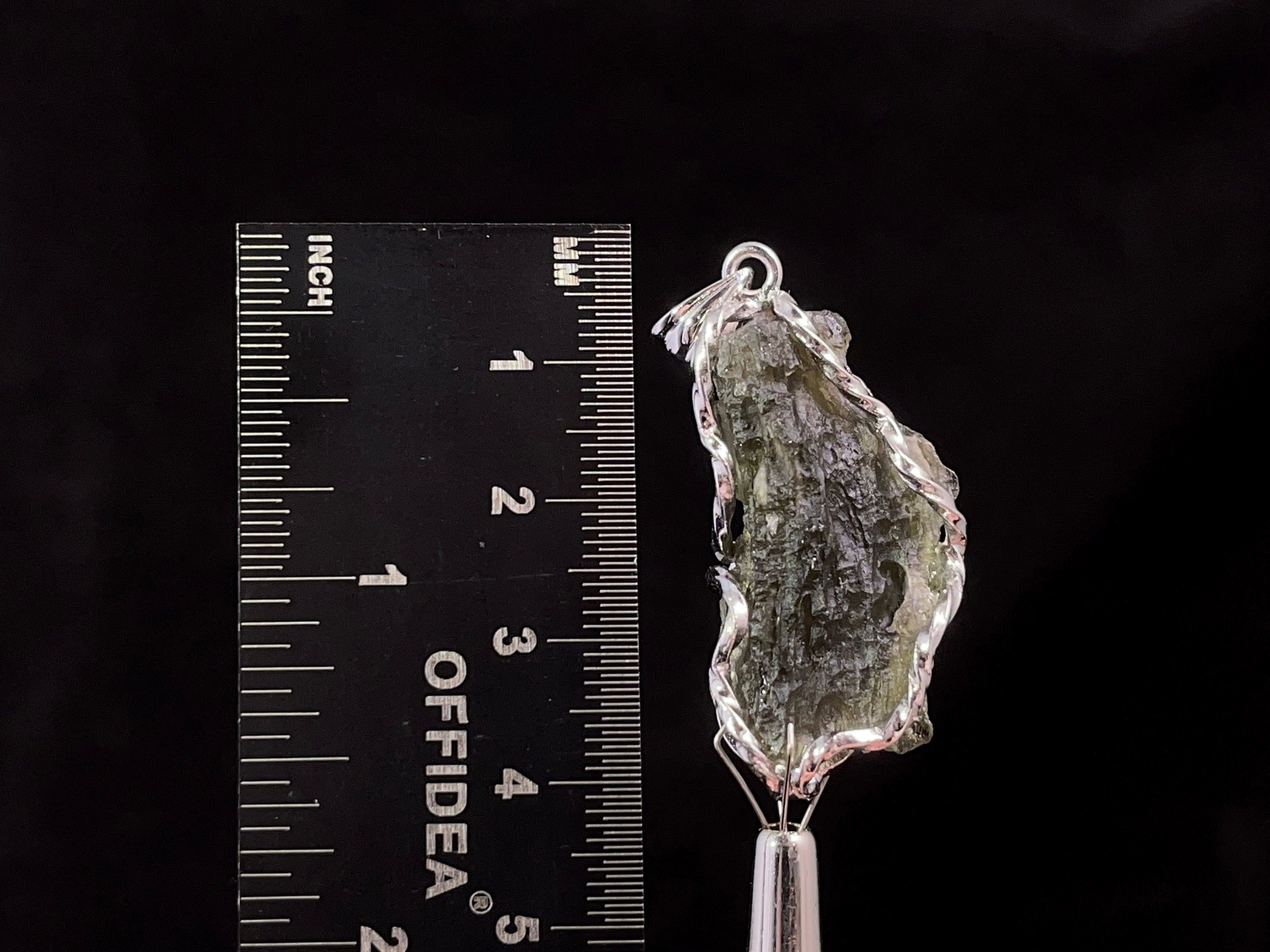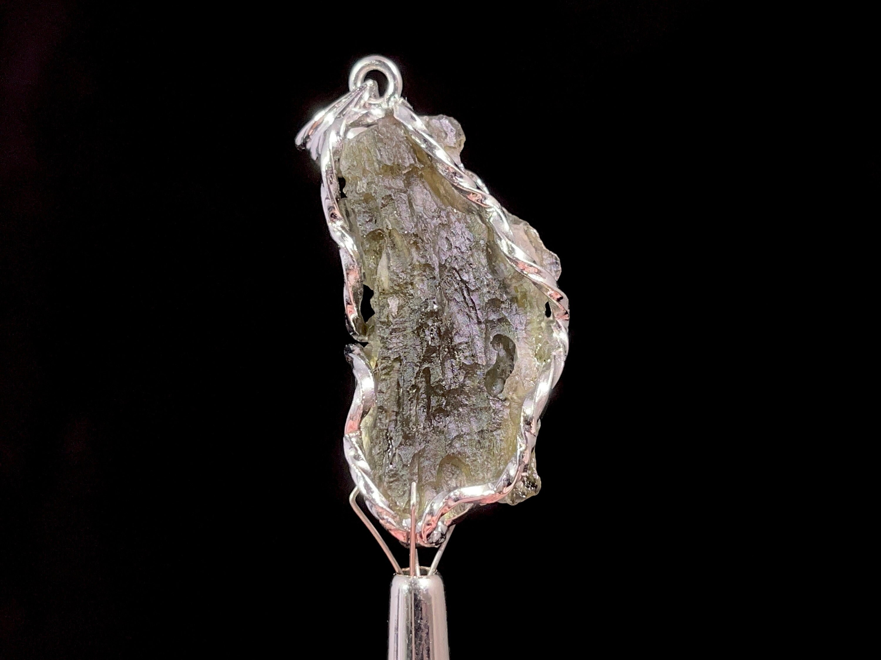 Raw MOLDAVITE Pendant Sterling Silver Wire Wrapped Genuine Crystal Jewelry 47418