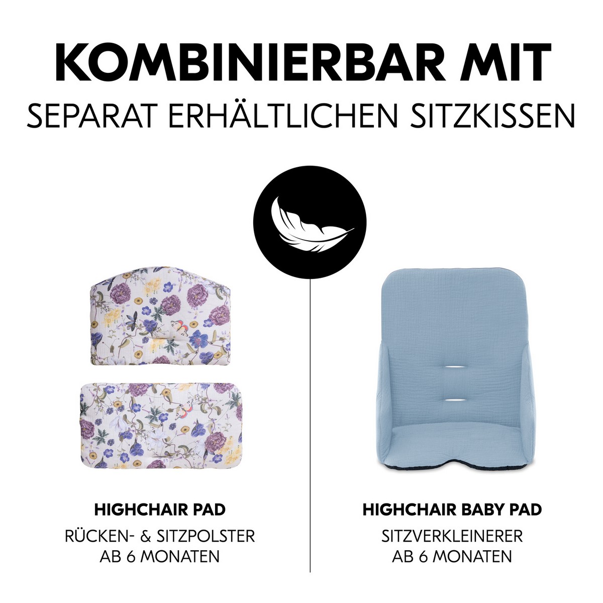 Dein Kind kann den Stuhl nach euren individuellen Bedürfnissen nutzen. Kombinierst du das Tablett mit Sitzverkleinerer und Sitzkissen, ermöglichst du deinem Kind zusätzlichen Komfort.