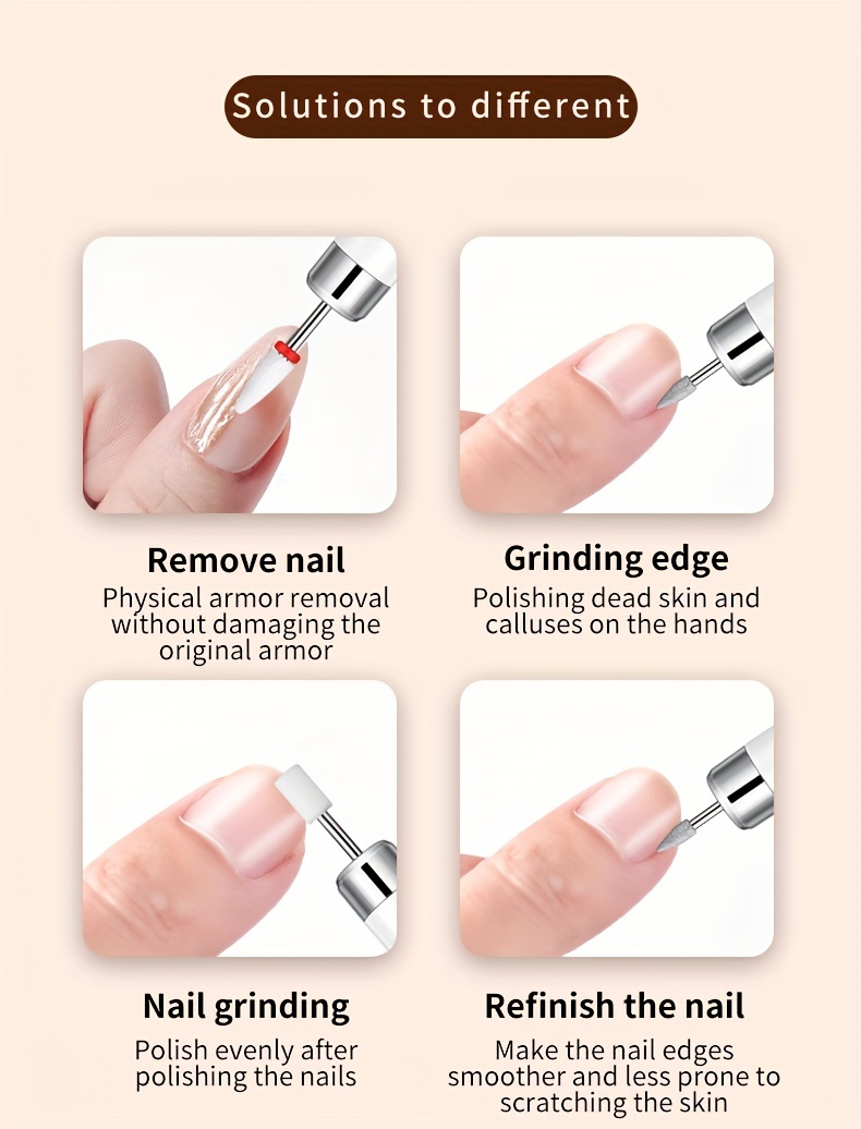 1. Nail beauty + nailart removal + nail grinding + nail polishing + dead skin removal, our multifunctional electric nail instrument allows you to easily make a beauty spa for your nails at home.