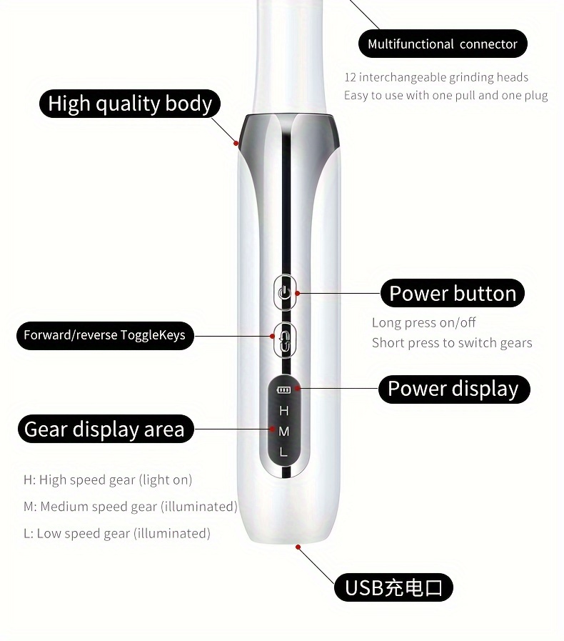 3. Equipped with 12 different types of replaceable grinding heads, our manicure instrument can meet your various nail beauty needs