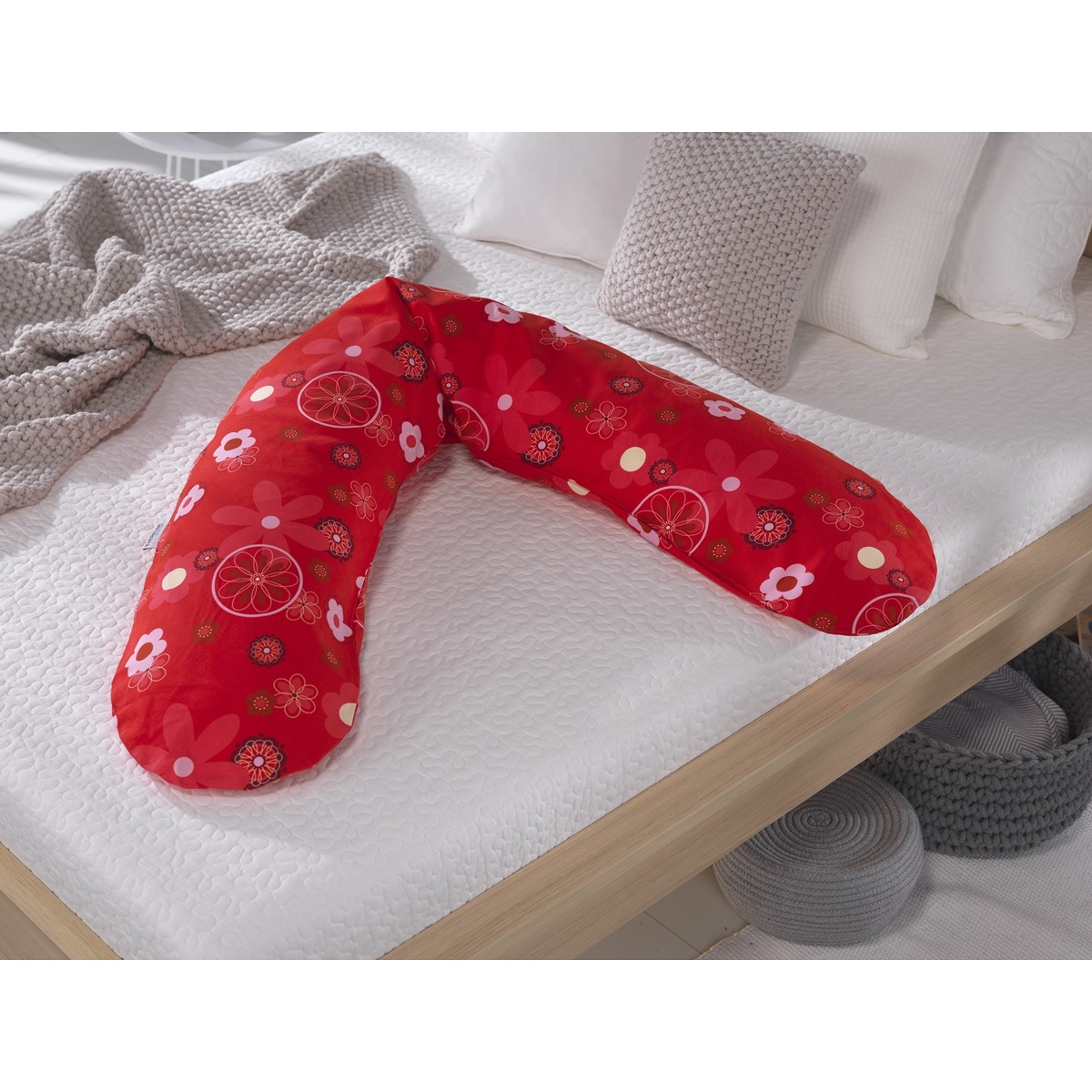 Theraline Stillkissen 190cm inkl. Bezug Retroblume rot Mikroperlenfüllung