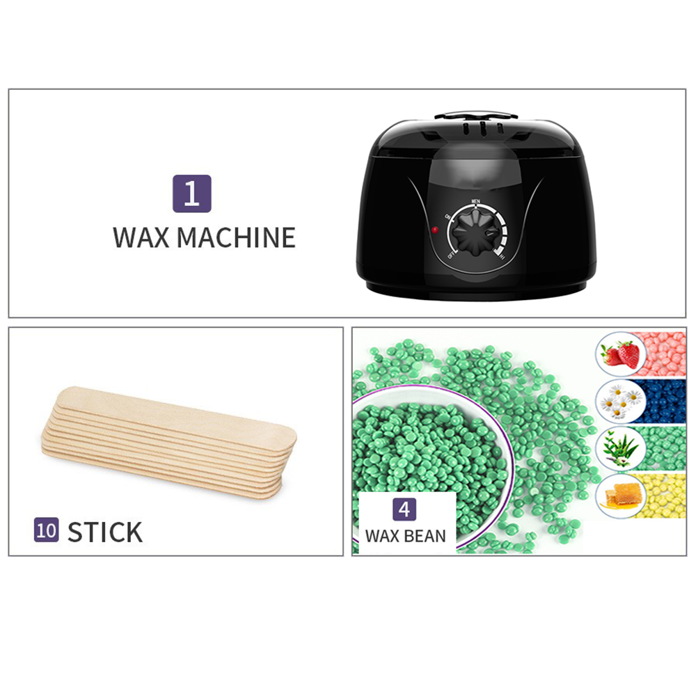 Complete Wax Kit: Full Kit Includes everything you need for home waxing, includes 1 wax warmer machine, 400g Was Beans (100g each bag in random colors), 10 waxing wood sticks for body.