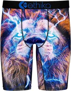 ETHIKA The Staple Lion AMPED UP Long Boxer Briefs. Flatlock stitching. No open fly. Fabric is 90% polyester, 10% spandex. Men's 2XL (39-41).