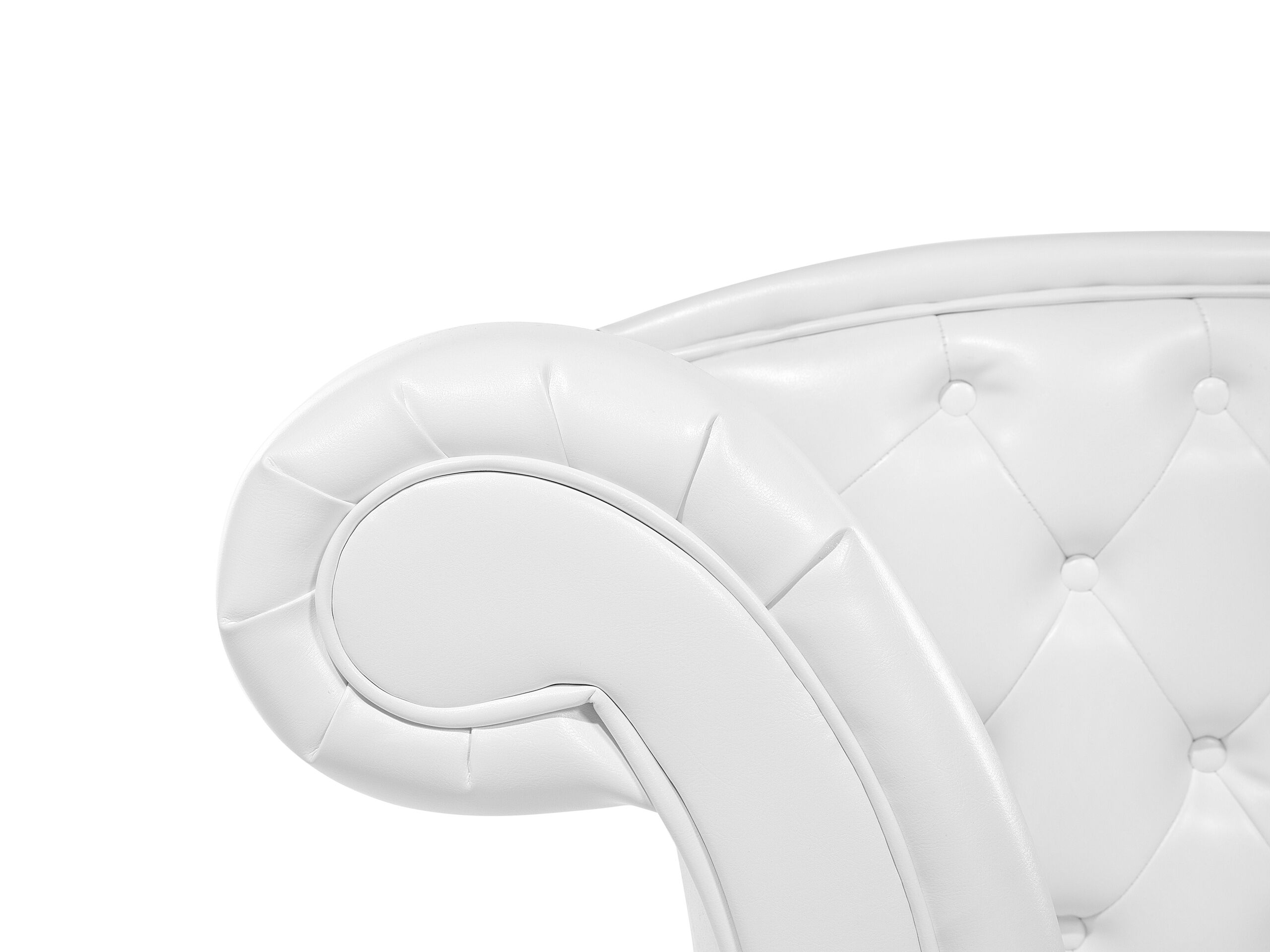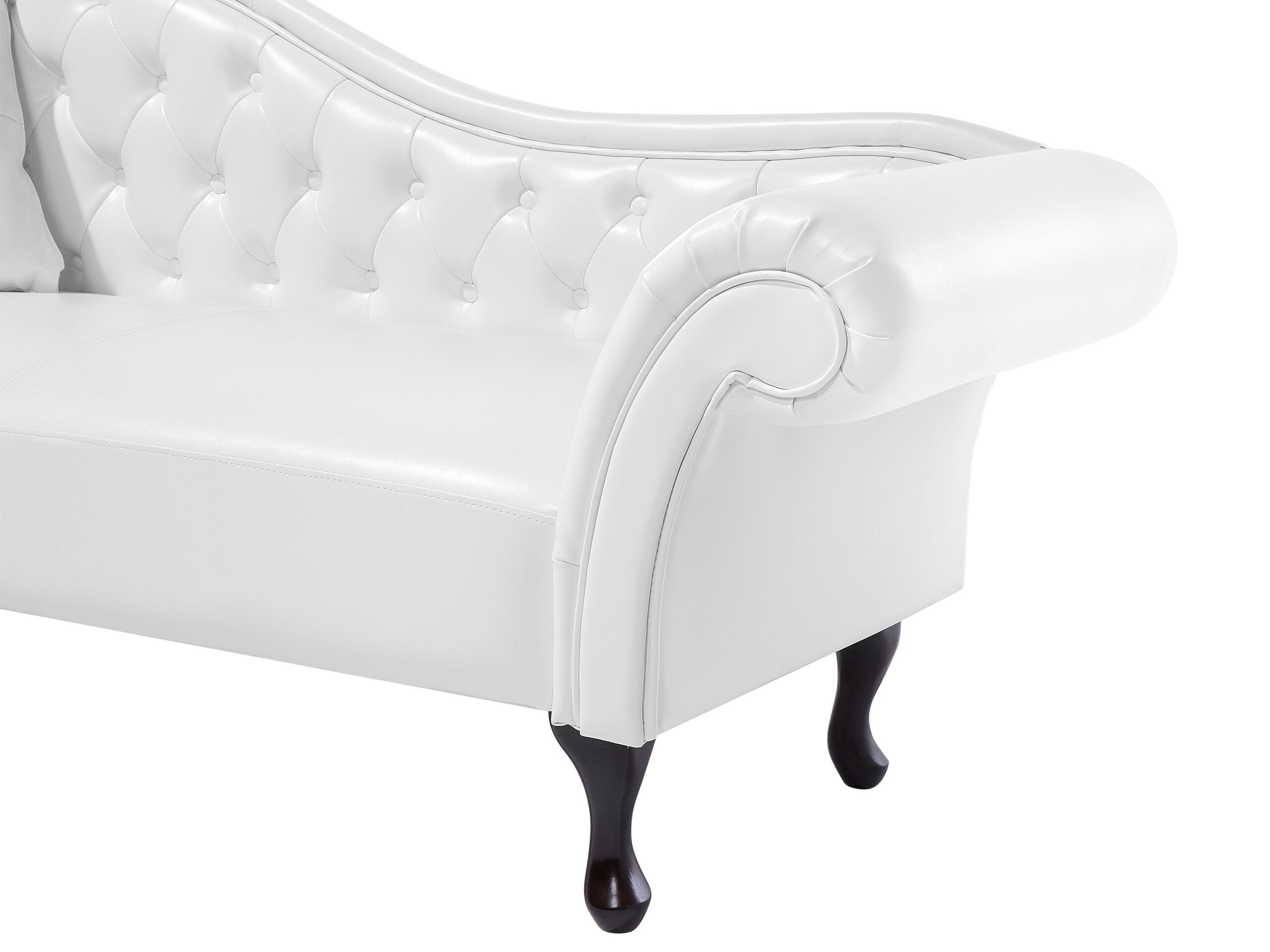 Classic Chaise Lounge. This classic chaise lounge is the perfect finishing touch to modern, as well as traditional, luxurious interiors. Designed with rolled arms on both sides and sleek-lined backrest, it offers total comfort and timeless style. Precise button-tufting decorates faux leather upholstery and curved, solid wood legs complete the elegant look.
