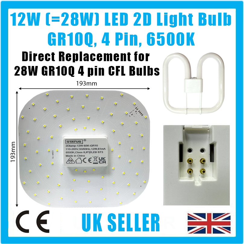 2x 12W (=28W Replacement) LED GR10Q 4 pin Light Bulb Double 2D, 6500K
