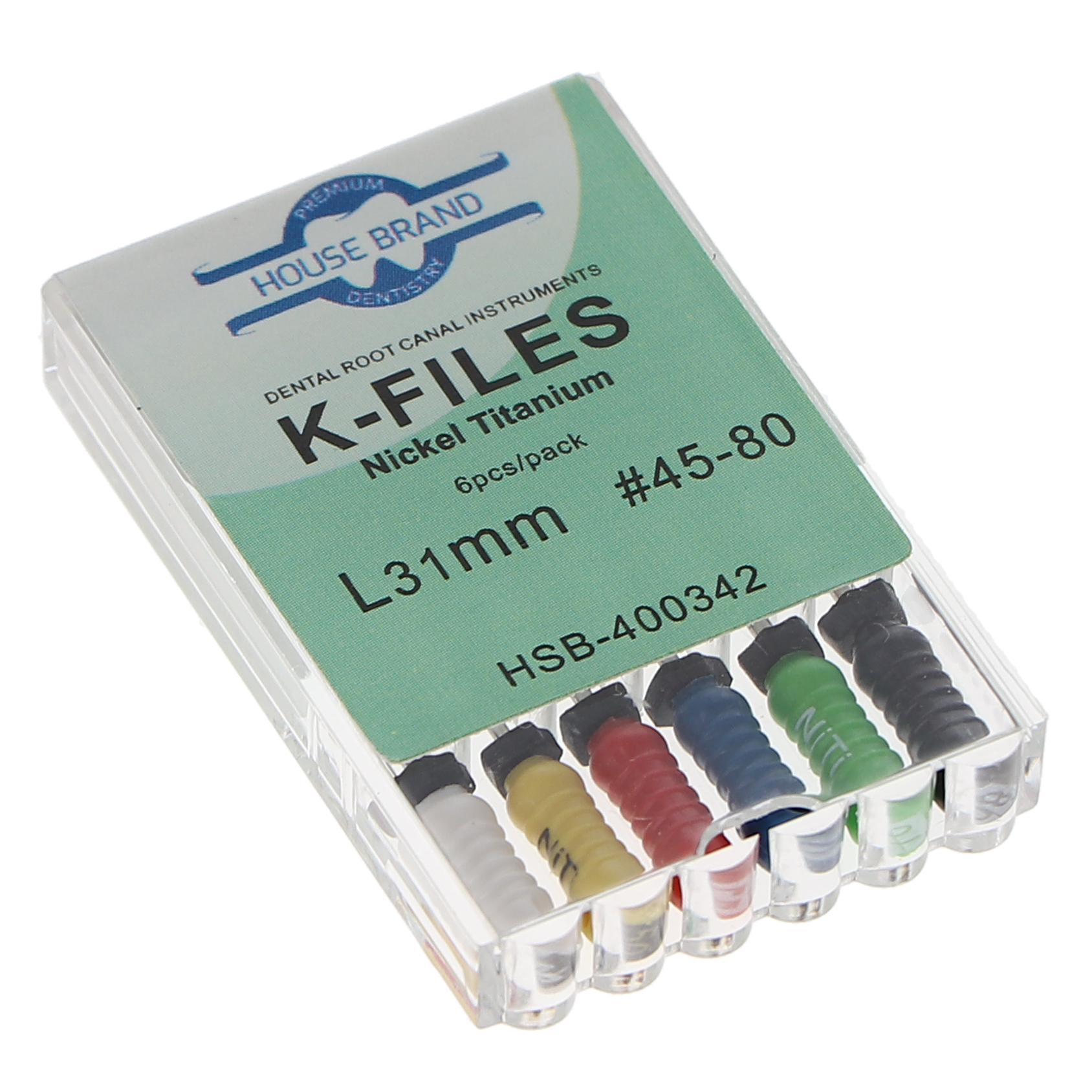 K-Files NiTi #45-80 Assorted 31mm 6/Pk. Strong and stable instrument for cleaning and shaping the canal walls. Nickel Titanium.