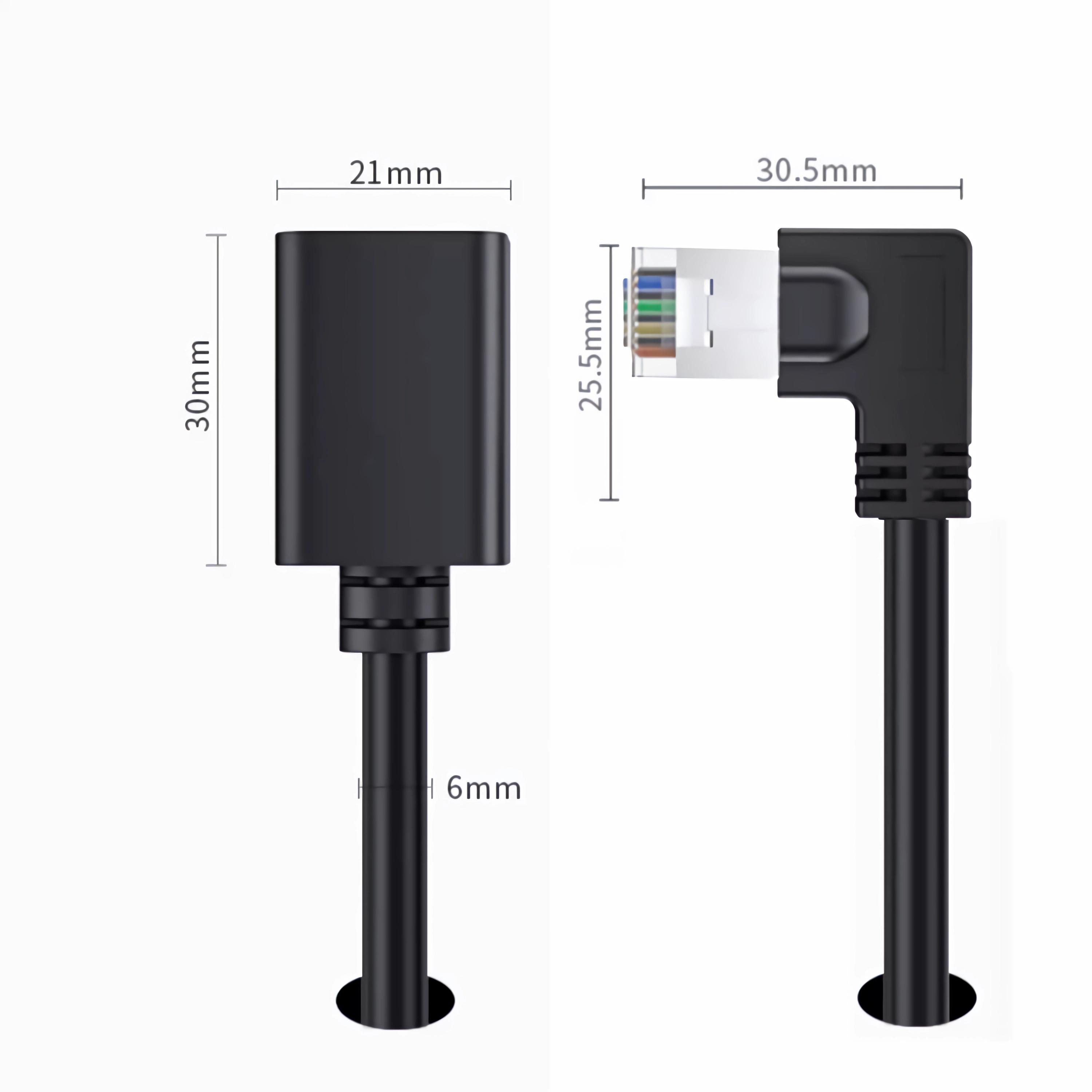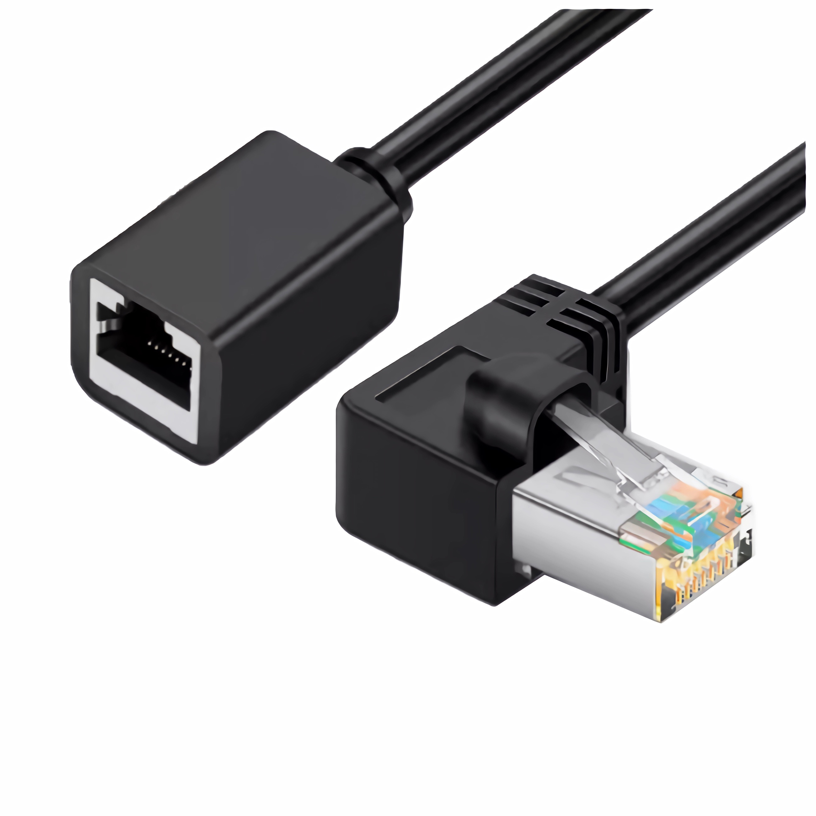 RJ45 Stecker nach links abgewinkelt auf RJ45 Buchse!