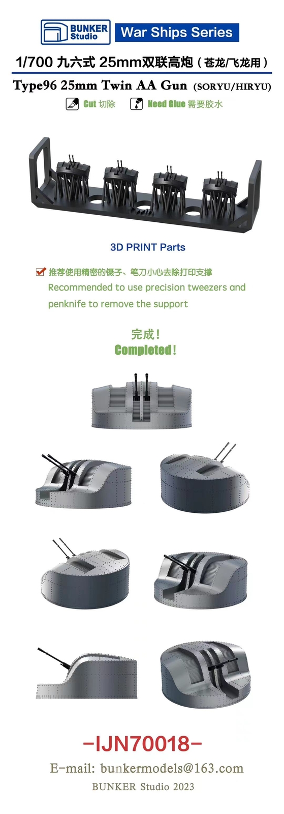 Bunker Studio 1/700 War Ships Series Type96 25mm Twin AA Gun (SORYU/HIRYU)