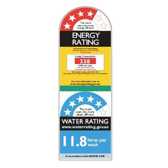 - WELS water rating 5 stars 11.8 litres per wash