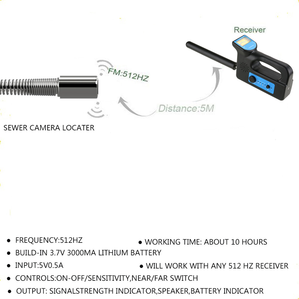 This endoscope camera has a built-in 512 hertz transmitter that helps to easily detect any blockage or area of interest. This greatly helps save time from having to dig and locate the problem. The sonde transmits a 512Hz signal that can be picked up with any compatible locator, allowing you to pinpoint the transmitter’sposition underground.