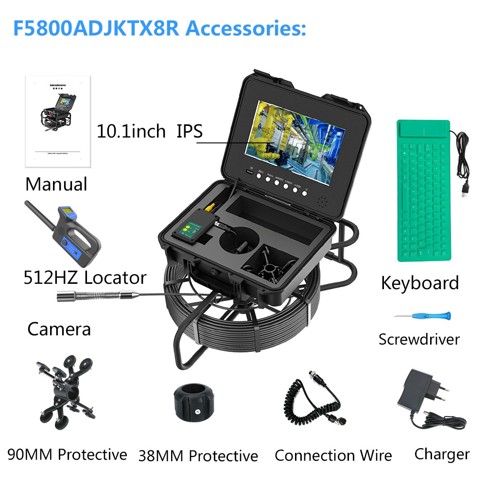 Professional Drain Pipe/Sewer Pipeline Inspection Camera is designed with a 10.1 inches color IPS LCD monitor for outdoor inspections.The material of wire is fiberglass rod(diameter: 7MM),anti-corrosion/cold/tensile.