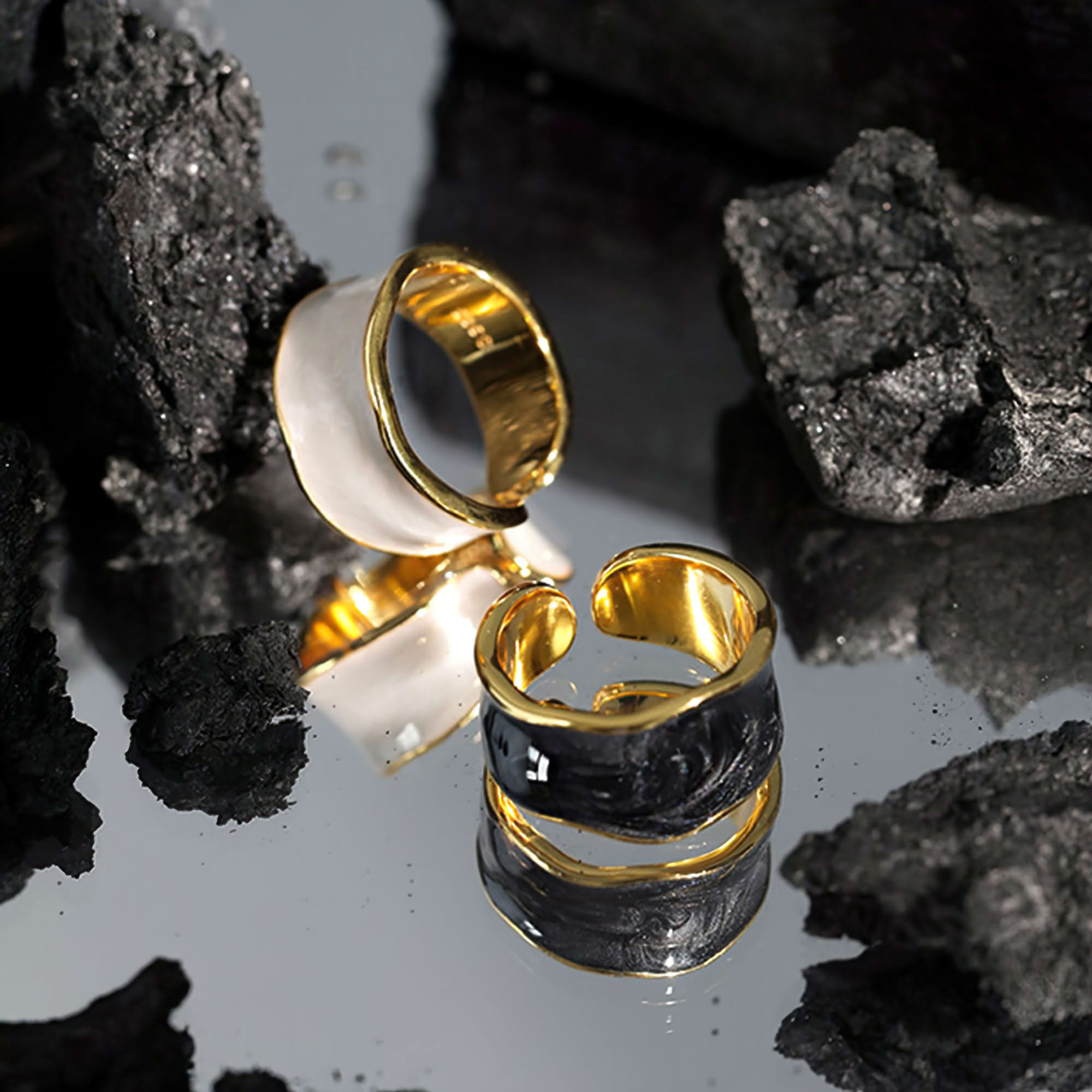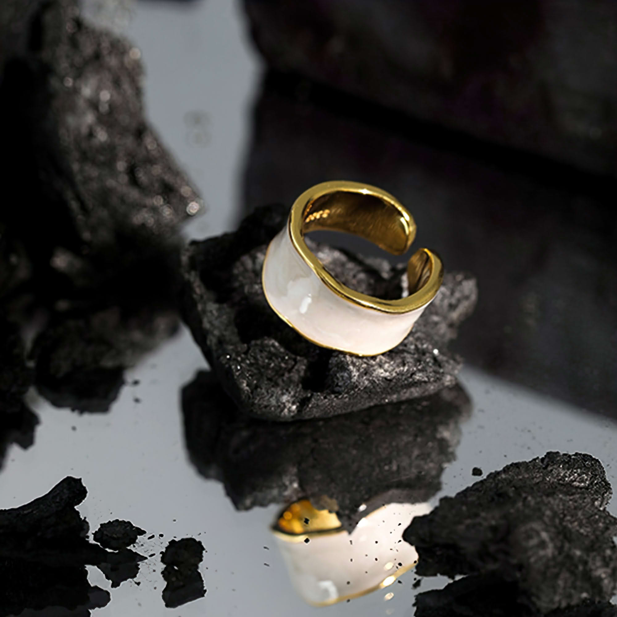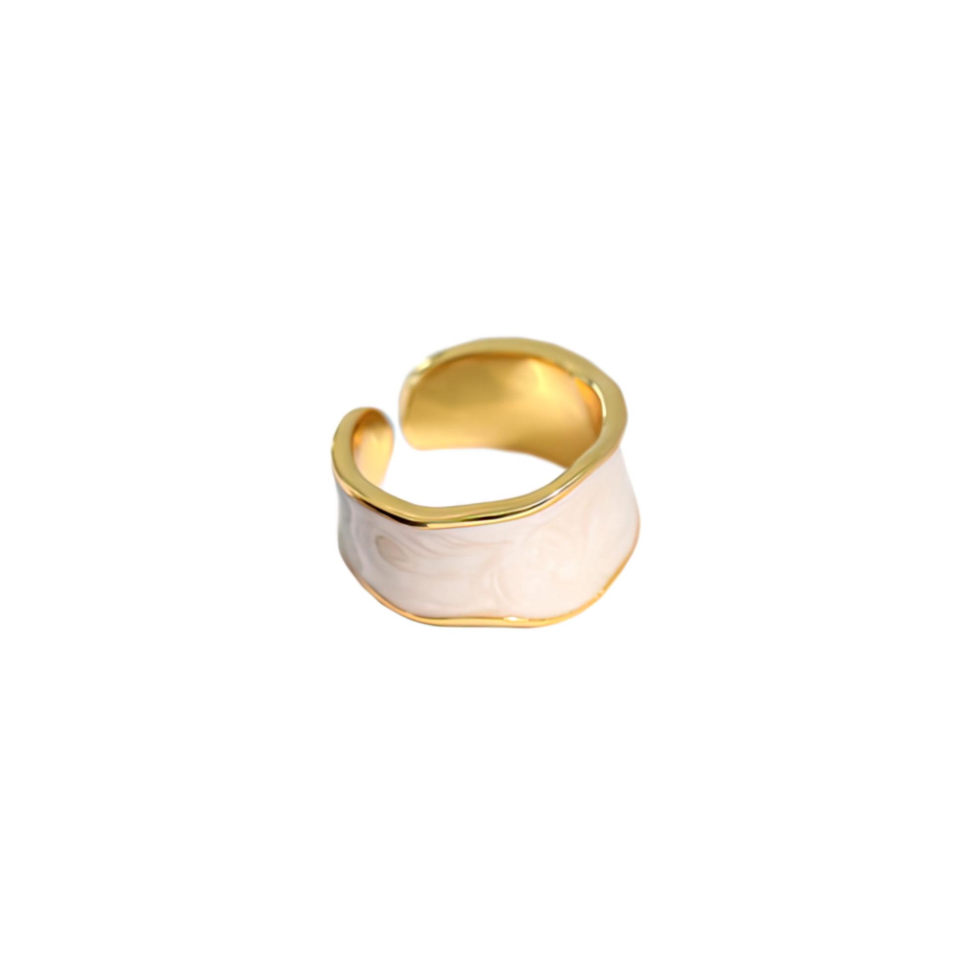 This Beige Enamaled Cocktail Yellow Gold Plated Ring boasts a gorgeous setting that stands out from the crowd. Perfect for any occasion, it's sure to be a stylish conversation-starter.