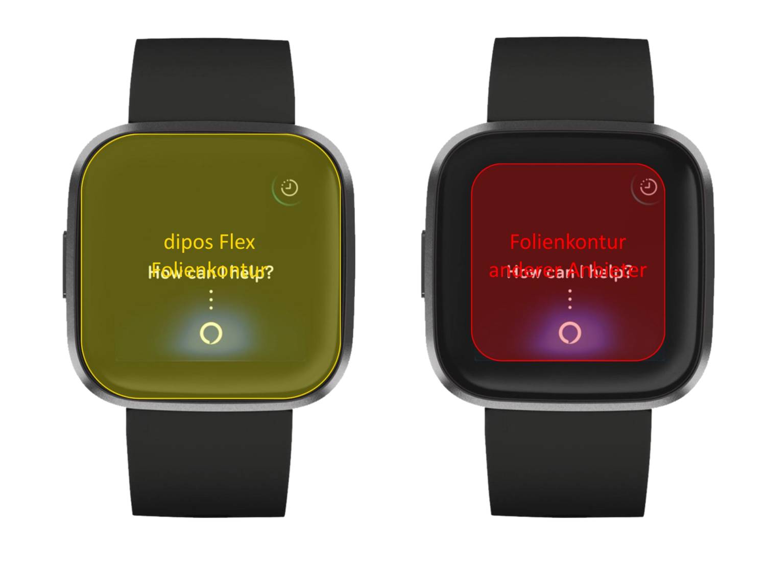 dipos FLEX ha sido diseñada especialmente para la pantalla curva del FitBit Versa 2 y lo protege completamente hasta el borde de la pantalla.