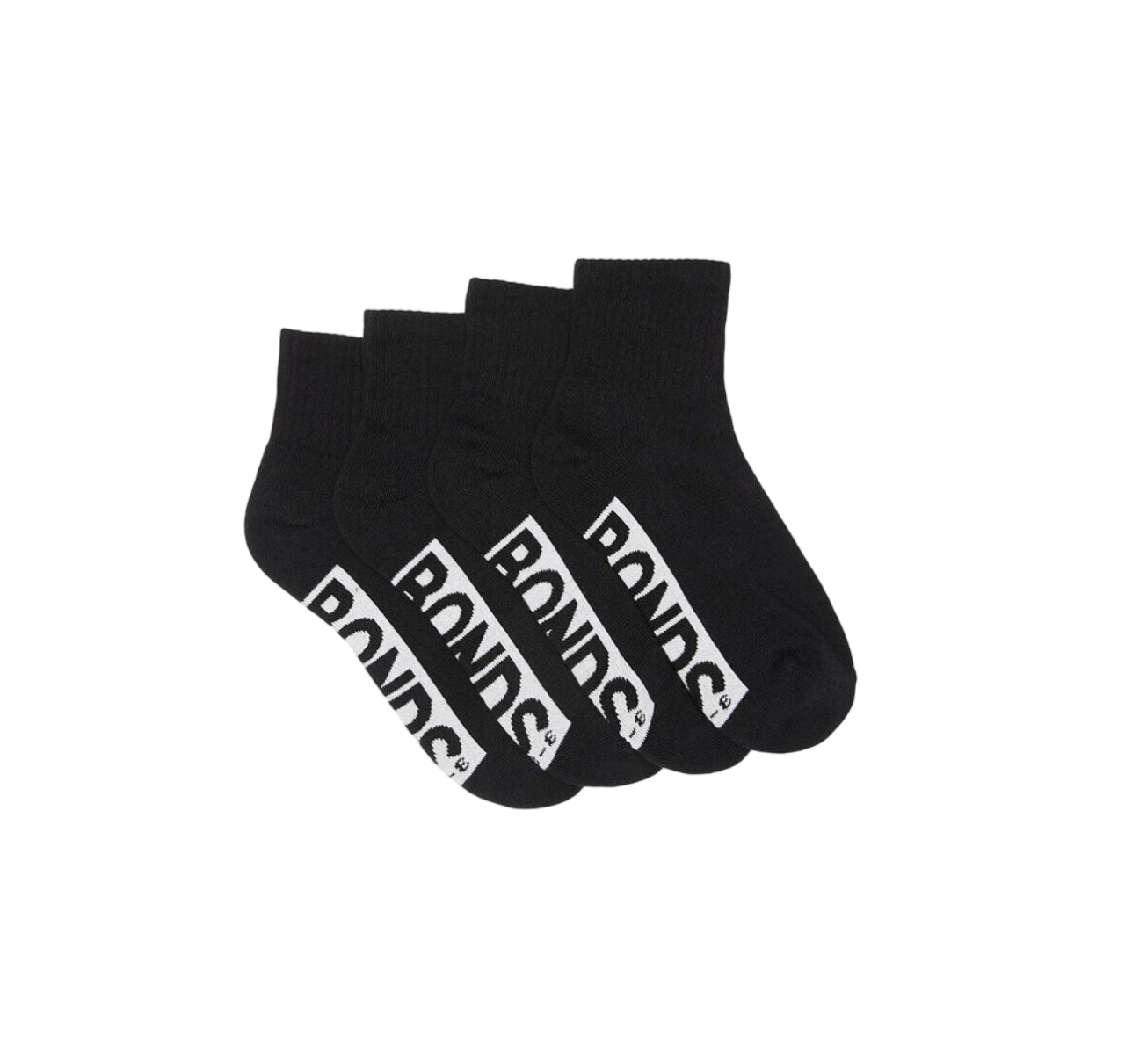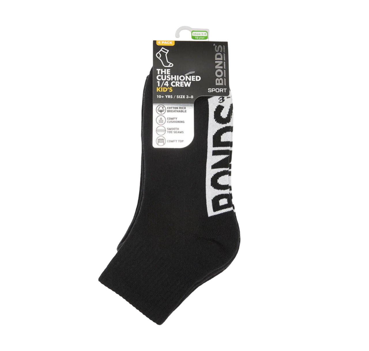 20 Pairs x Bonds Kids Logo Cushioned Quarter Crew Black Socks