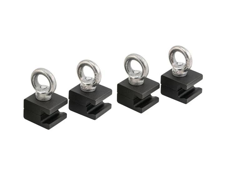 The eye bolt tie downs slide into any position on the base rack and help provide quick and safe lashing points for securing your loads.