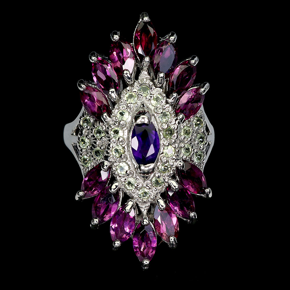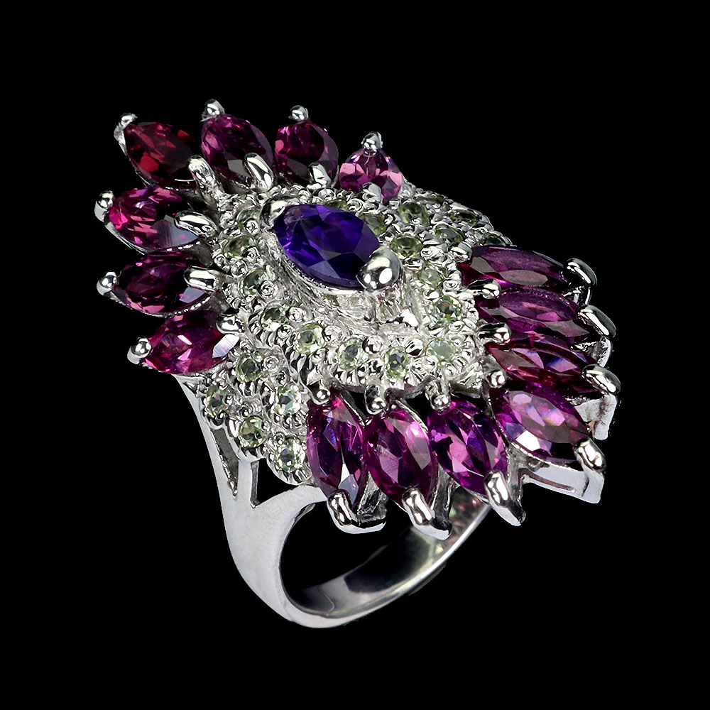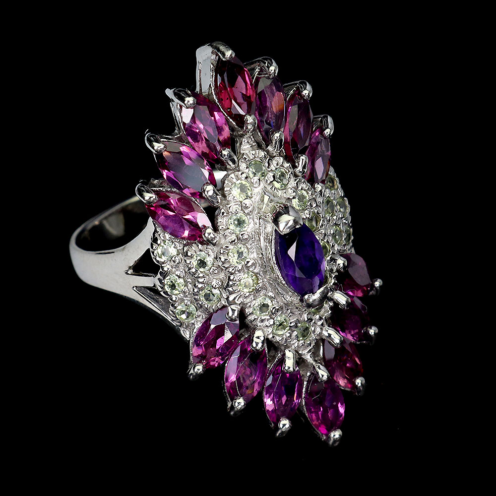 925 Sterling Silver Ring Marquise Amethyst Peridot Garnet Gemstone Jewelry