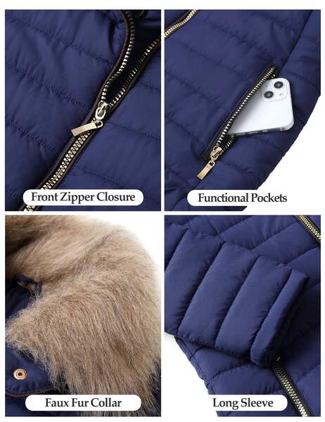 This womens winter coats is tailored of detachable fur lapel, both buttons and zipper closure,easily take it on or off. The fur keeps your neck warm.