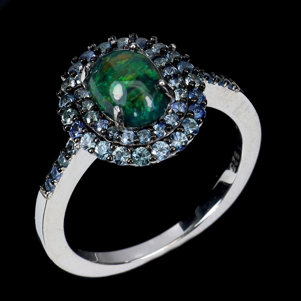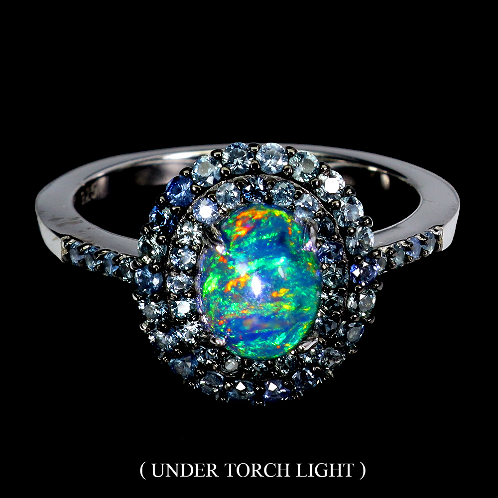 925 Sterling Silver Ring Oval Black Opal 8x6mm Sapphire Gemstone Jewelry 7.5