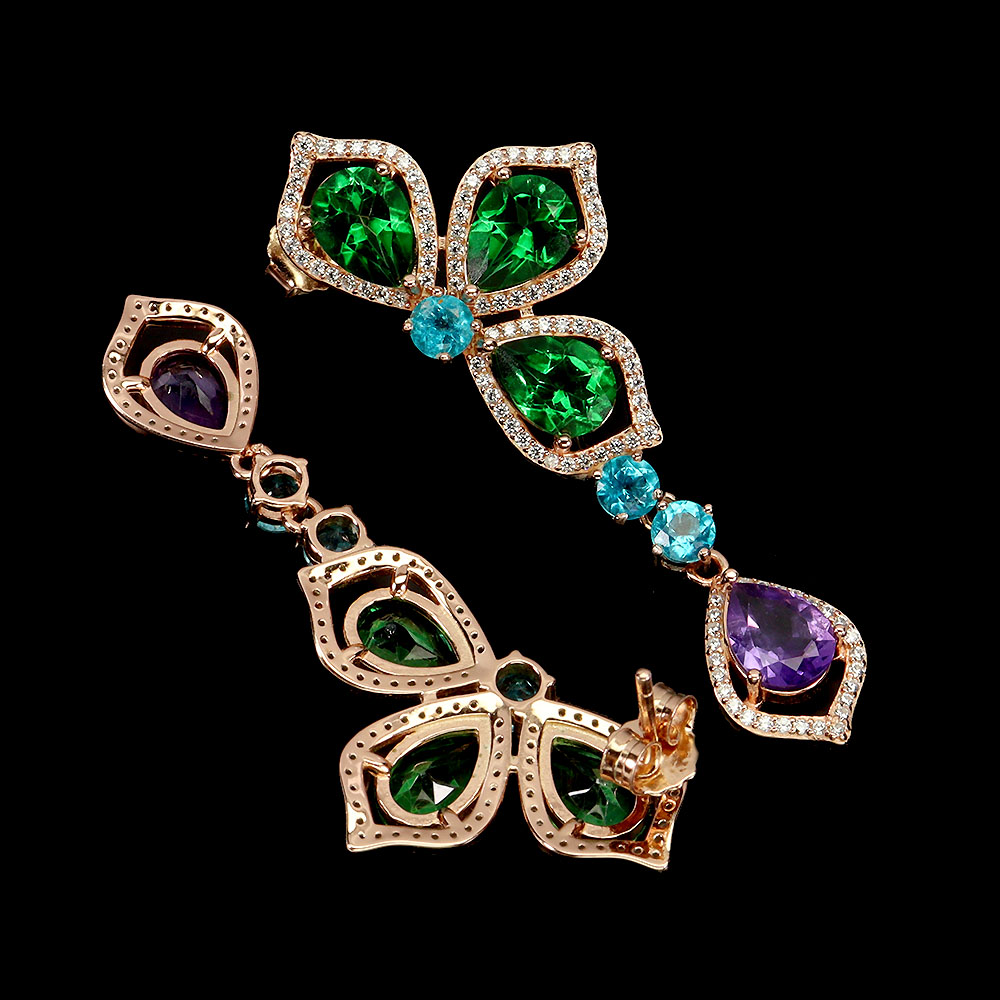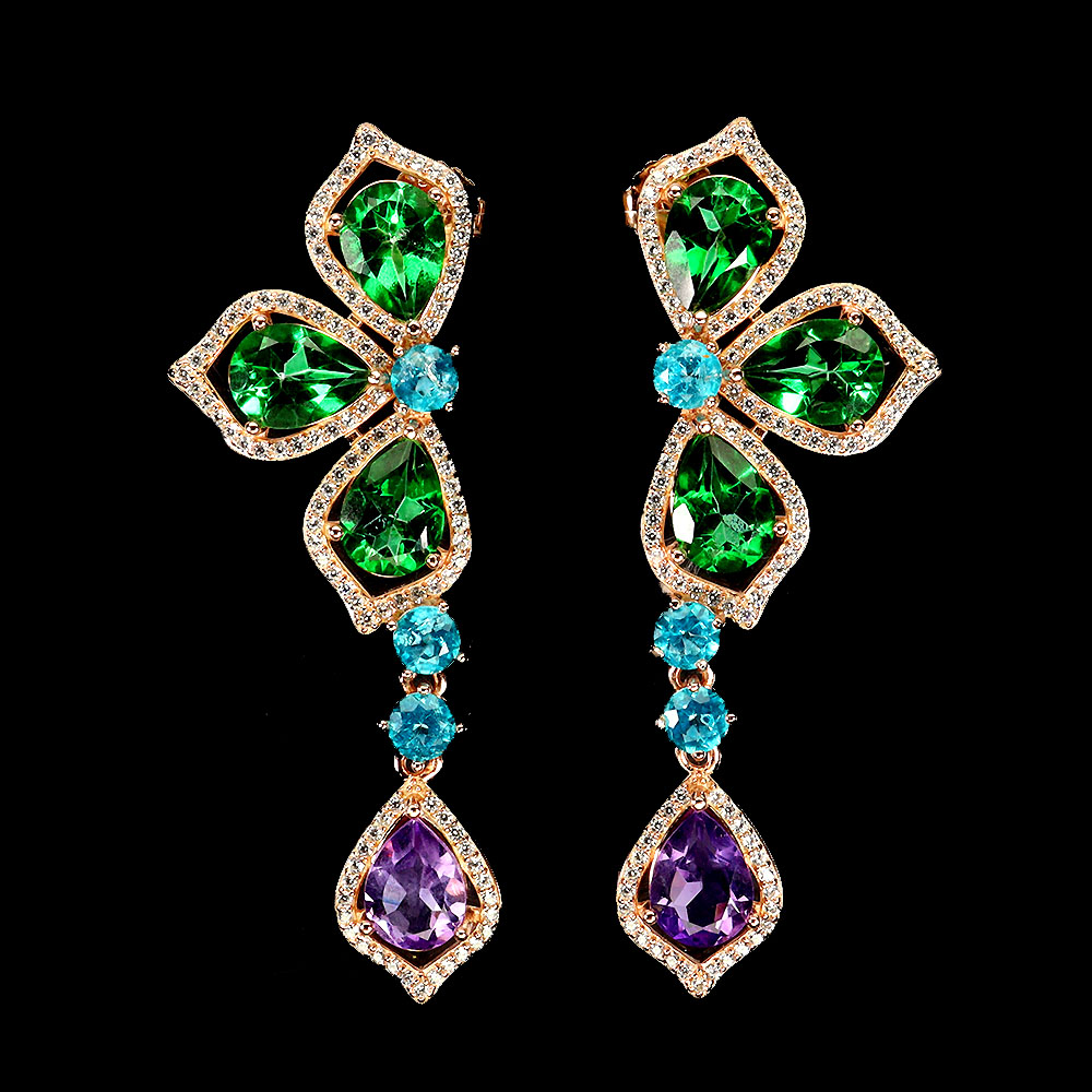 925 Sterling Silver Earrings Pear Green Topaz 8x6mm Paraiba Blue Topaz Gemstone
