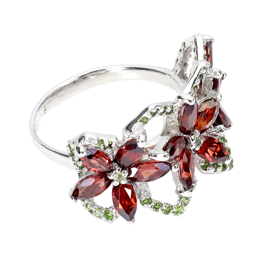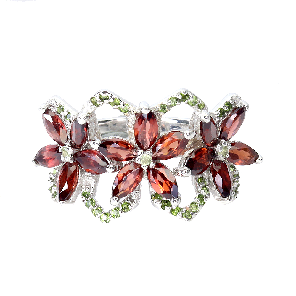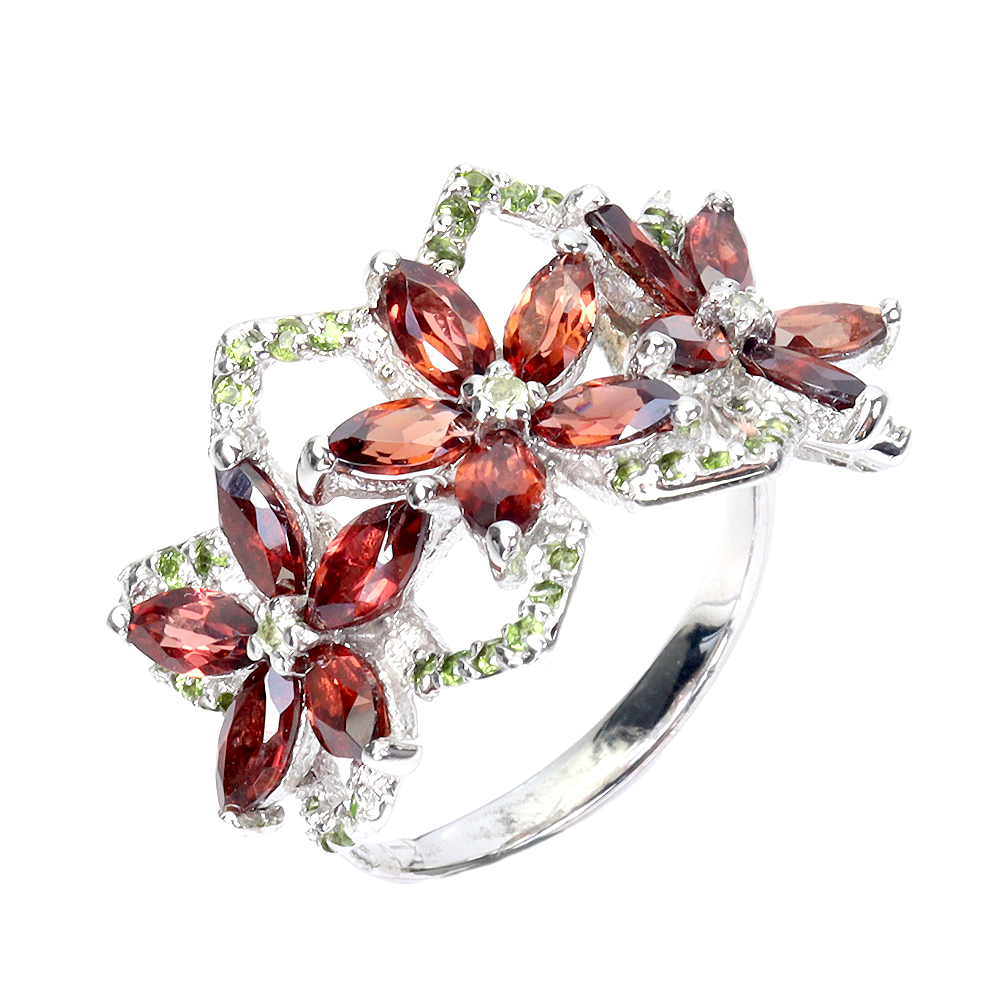 925 Sterling Silver Ring Marquise Mozambique Garnet Peridot Gemstone Jewelry