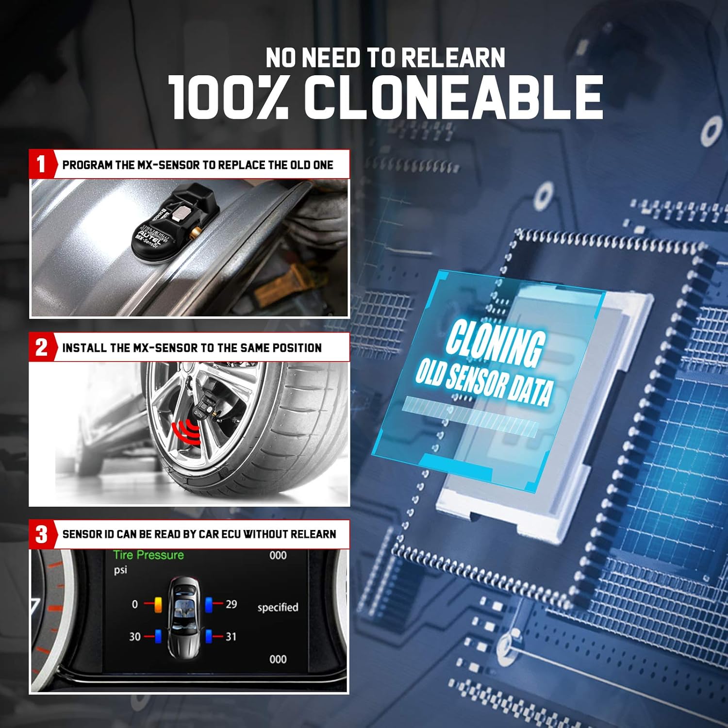 How To Install This Autel MX-Sensor 1 Sensor?1.Loosening the tire: Remove the valve cap and core and deflate the tire. Use the bead loosener to unseat the tire bead.2.Dismounting the tire: Clamp the tire onto the tire changer, and adjust the valve at 1 o’clock relative to the tire separation head. Insert the tire tool and lift the tire bead onto the mounting head to dismount the bead.3.Dismounting the sensor: Remove the screw nut from the valve stem, and then remove the sensor assembly from the rim.4.Mounting sensor and valve: Connect the sensor body and valve stem at a suitable angle (normally use the maximum angle of 30 degrees) and tighten the screw.5.Remove the screw nut from the valve stem.6.Slide the valve stem through the valve hole of the rim with the sensor on the inside of the rim.7.Tighten the screw-nut with 4.0 nm with the help of the positioning pin.8.Mounting the tire: Place the tire on the rim, make sure that the valve faces the separation head at an angle of 180 degrees. Mount the tire over the rim.Notice:·The TPMS sensor assemblies are replacement or maintenance parts for vehicles that have a factory installed TPMS.·Make sure to program the sensor by Autel sensor pro-gramming tools for your specific vehicle make, model and year before installation.·Do not install programmed TPMS sensor in damaged wheels.·In order to guarantee optimal function, the sensor may only be installed with original valves and accessories provided by Autel.·Upon completion of installation, test the vehicle TPMS systems using procedures described in the original manufacturer’s user guide to confirm proper installation.·Each time a tire is serviced or dismounted, or if the sensor is removed or replaced, it is mandatory to replace the rubber grommet, washer, nut and valve core with our parts to ensure proper sealing. It is mandatory to replace the sensor if it is extremely damaged.·Autel MX-Sensor arrive blank and must be programmed with an Autel TPMS service tool prior to installation or at 0 PSI/kPa·Do not race with the vehicle on which the Snap-in MX-Sensor is mounted, and always keep the drive speed under 180km/h for Metal Valve sensor, or 240km/h for Rubber Stem sensor.Autel 1 Sensor Specification:·Battery Life: ≥5 years·Operating Temperature: -40°C – 125°C·Storage Temperature: -40°C t – 125°C·Operating Humidity: ≤90%·Operating Frequency: 315 MHz~433MHz·Max. Pressure range: 800 kPa·Temperature Reading Range: -40°C – 125°C·Temperature Reading Accuracy: ±5°C·G Sensor Reading Accuracy: ±15%·Transmission Power: 5-8dBm·Battery: 3.0 V·Dimensions: Approx. 42.4*24.1*16.0 mm·Weight of Sensor without Valve: 13gPackage List:4pcS 315MHz & 433MHz 2in1 MX-Sensor