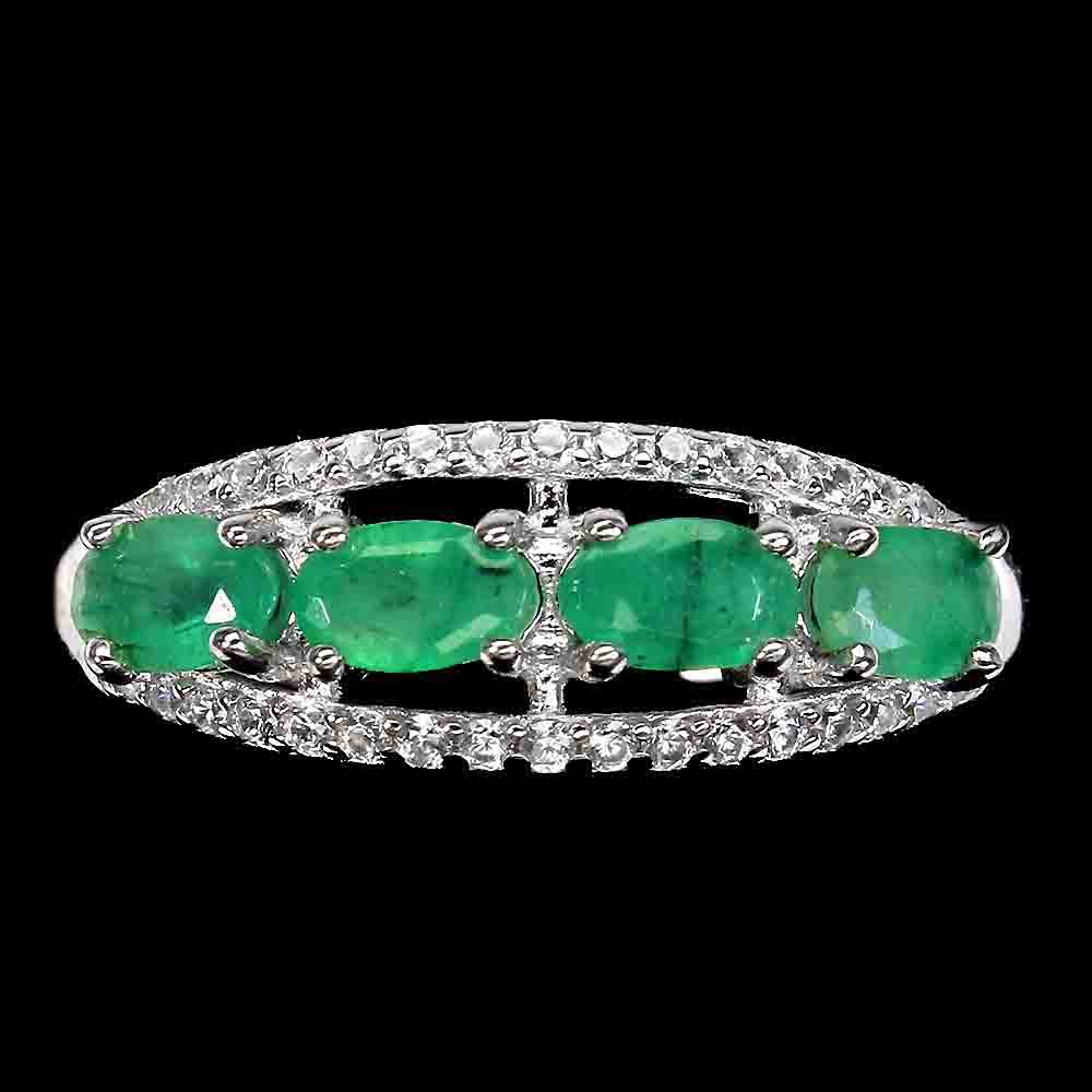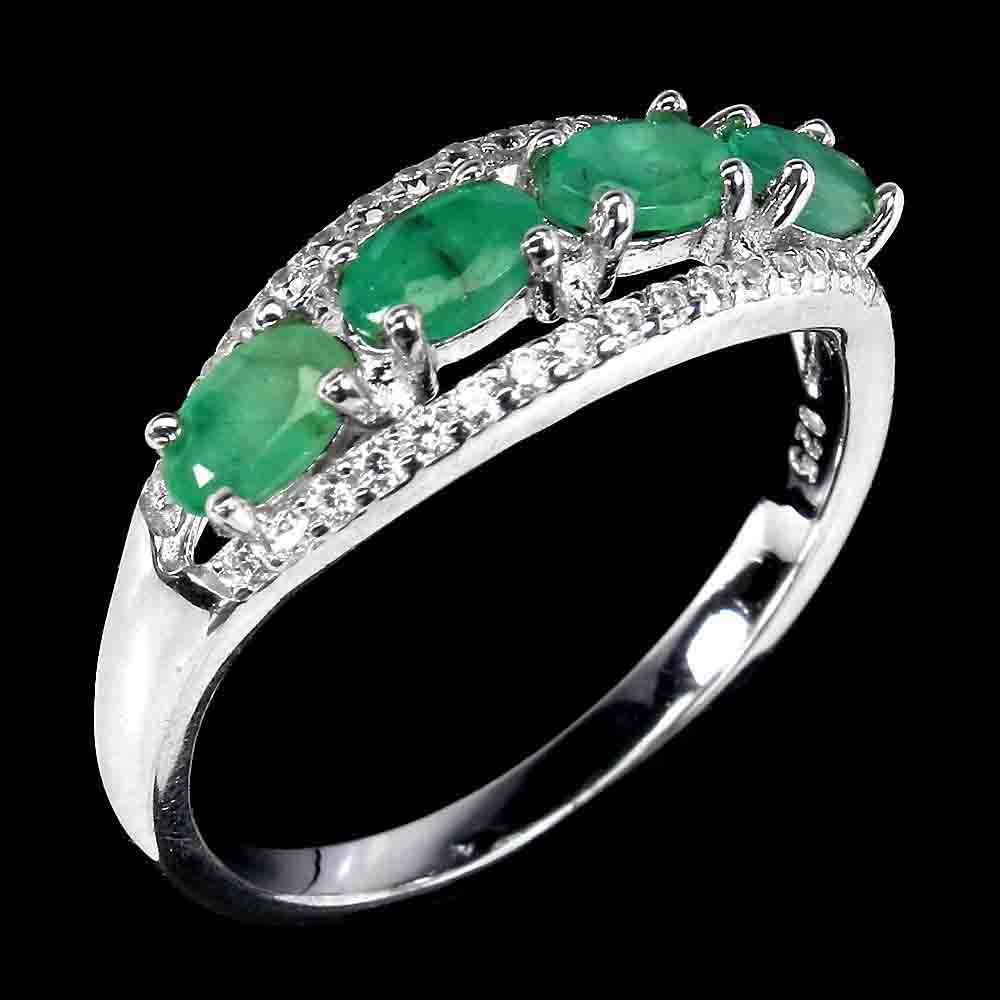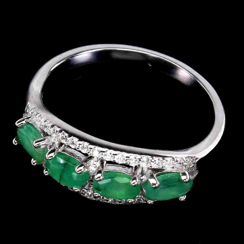 Unheated Oval Emerald 5x3mm Cz 14K White Gold Plate 925 Sterling Silver Ring 8