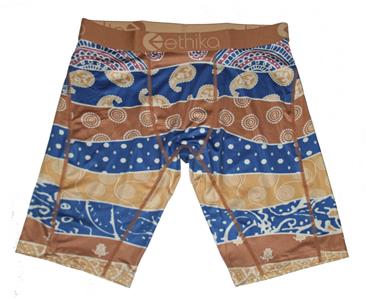ETHIKA The Staple Paisley Stripes Boxer Briefs. Flatlock stitching. No open fly. Fabric is 90% polyester, 10% spandex. Men's size Medium (30-32).
