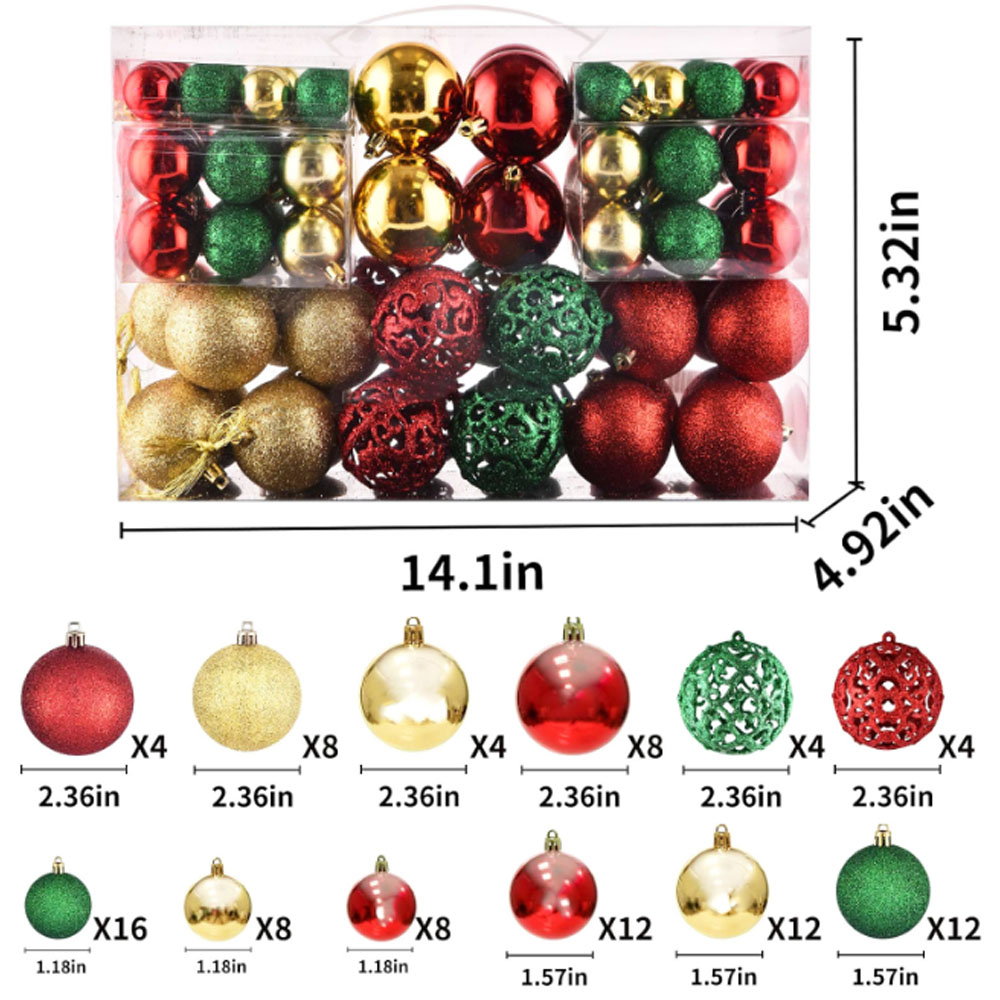 2. Abundant Quantity: One set contains 100 Christmas balls, enough to decorate a Christmas tree, and even the remaining can be used to decorate other corners of the room, making your Christmas decoration more colorful