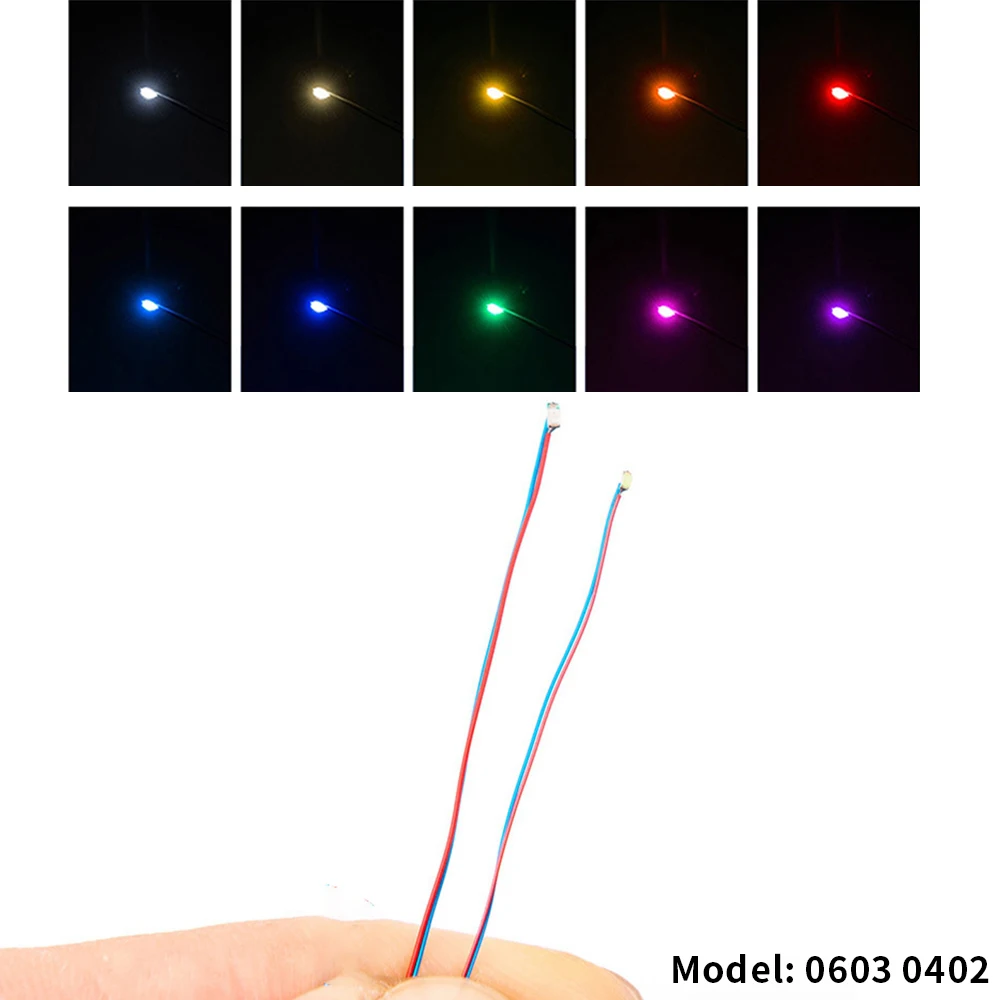 20Pcs 2-3V 0402 0603 Led SMD Lamp Pre Wired Micro Led Pre-Soldered Micro Litz Wired Chip 30cm Railway Scenes Model Building Kits