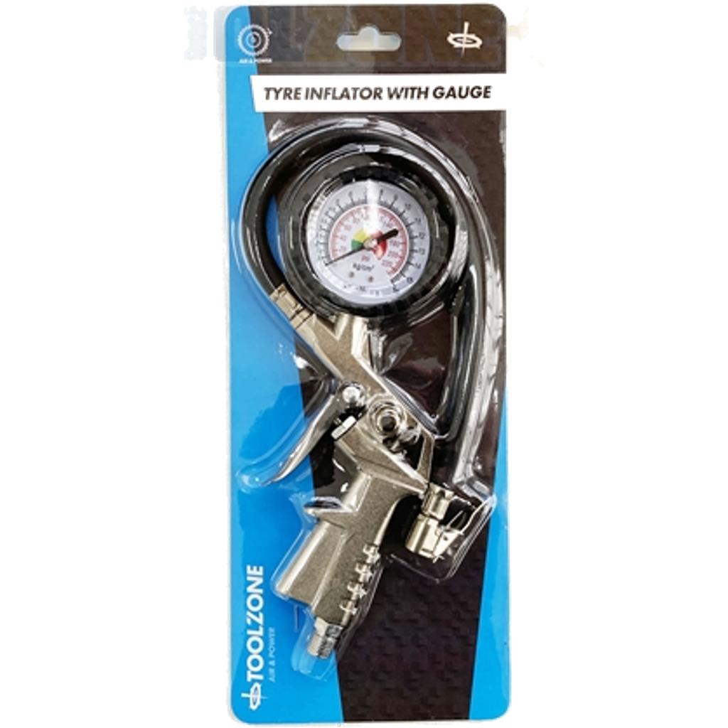 Toolzone Air Line Tyre Pump Inflator Pressure Dial Gauge Compressor 1/4" BSP