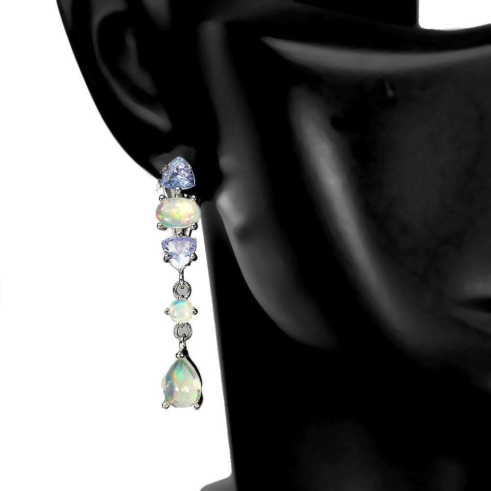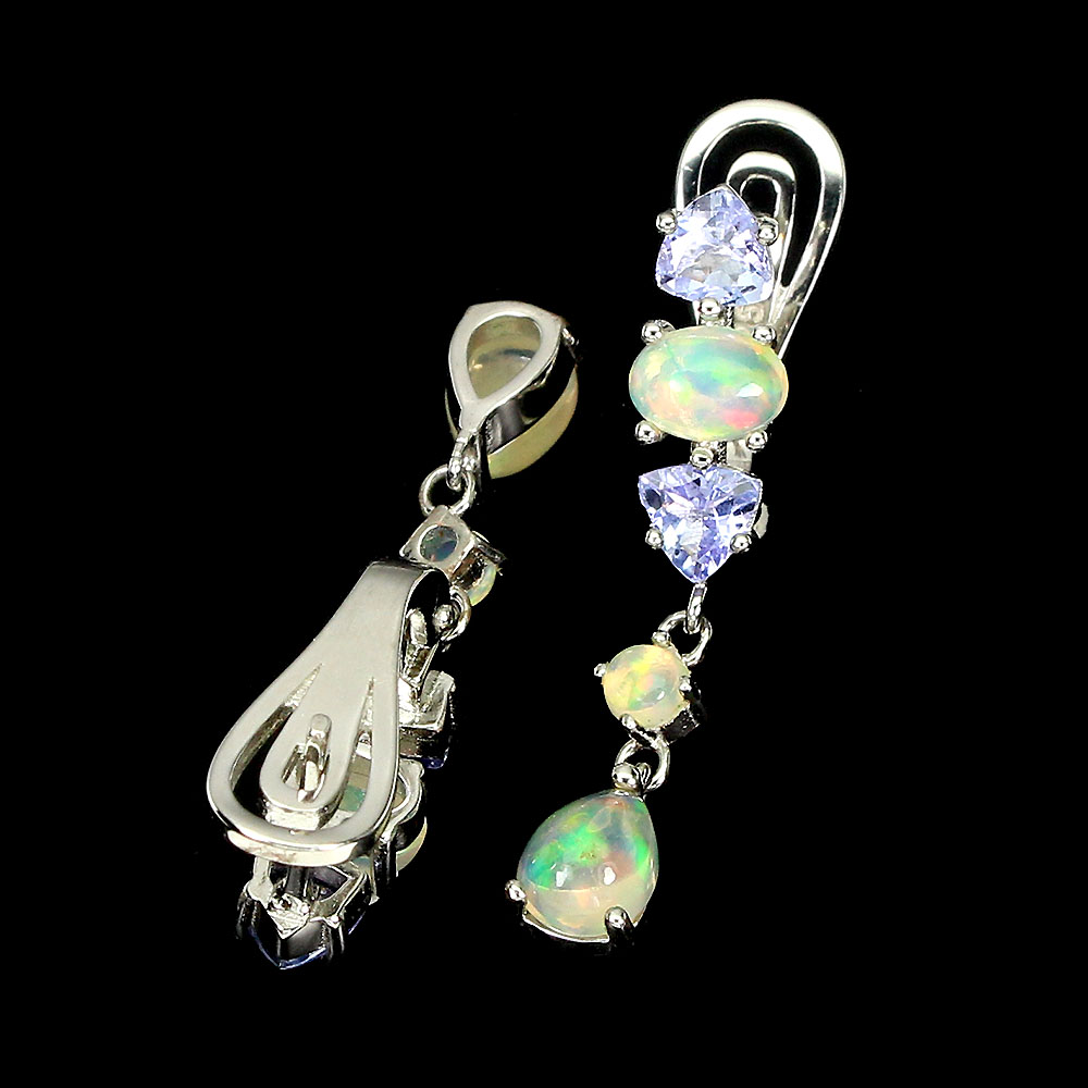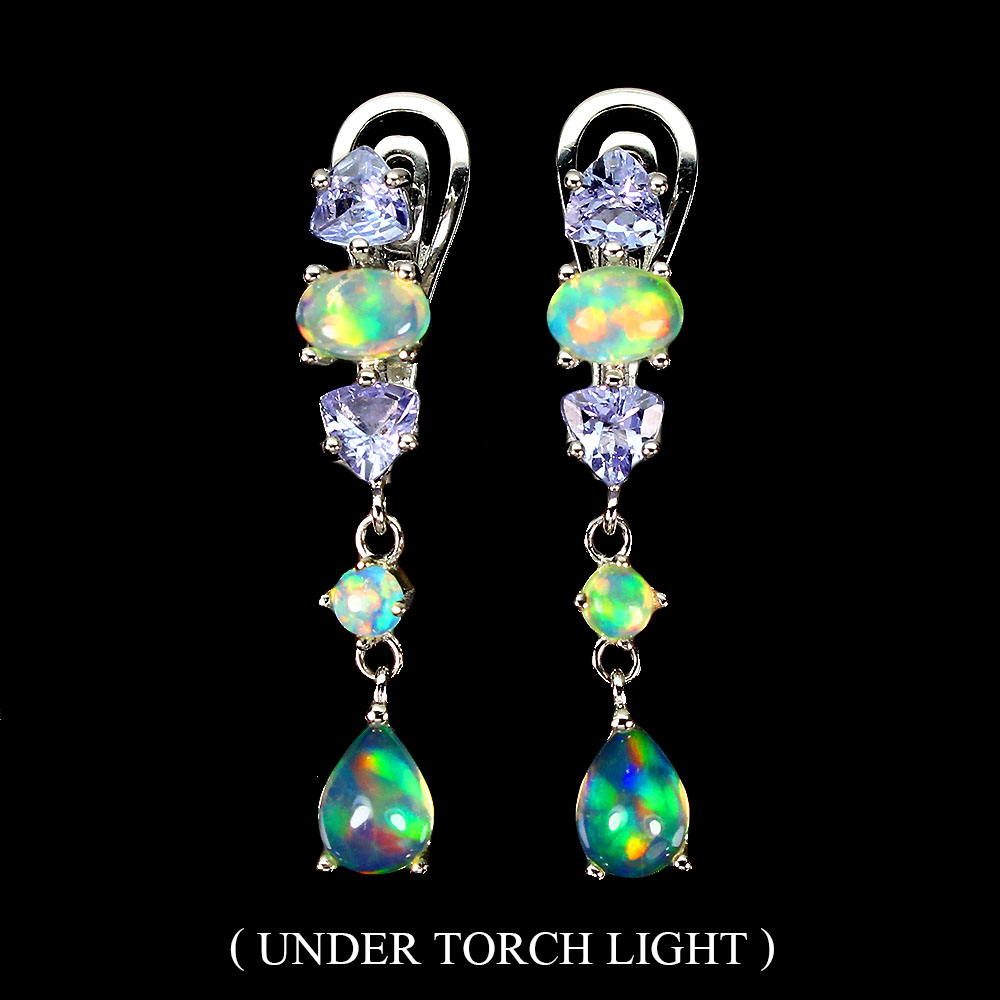 Unheated Pear Fire Opal Hot Rainbow 6x4mm Tanzanite 925 Sterling Silver Earrings