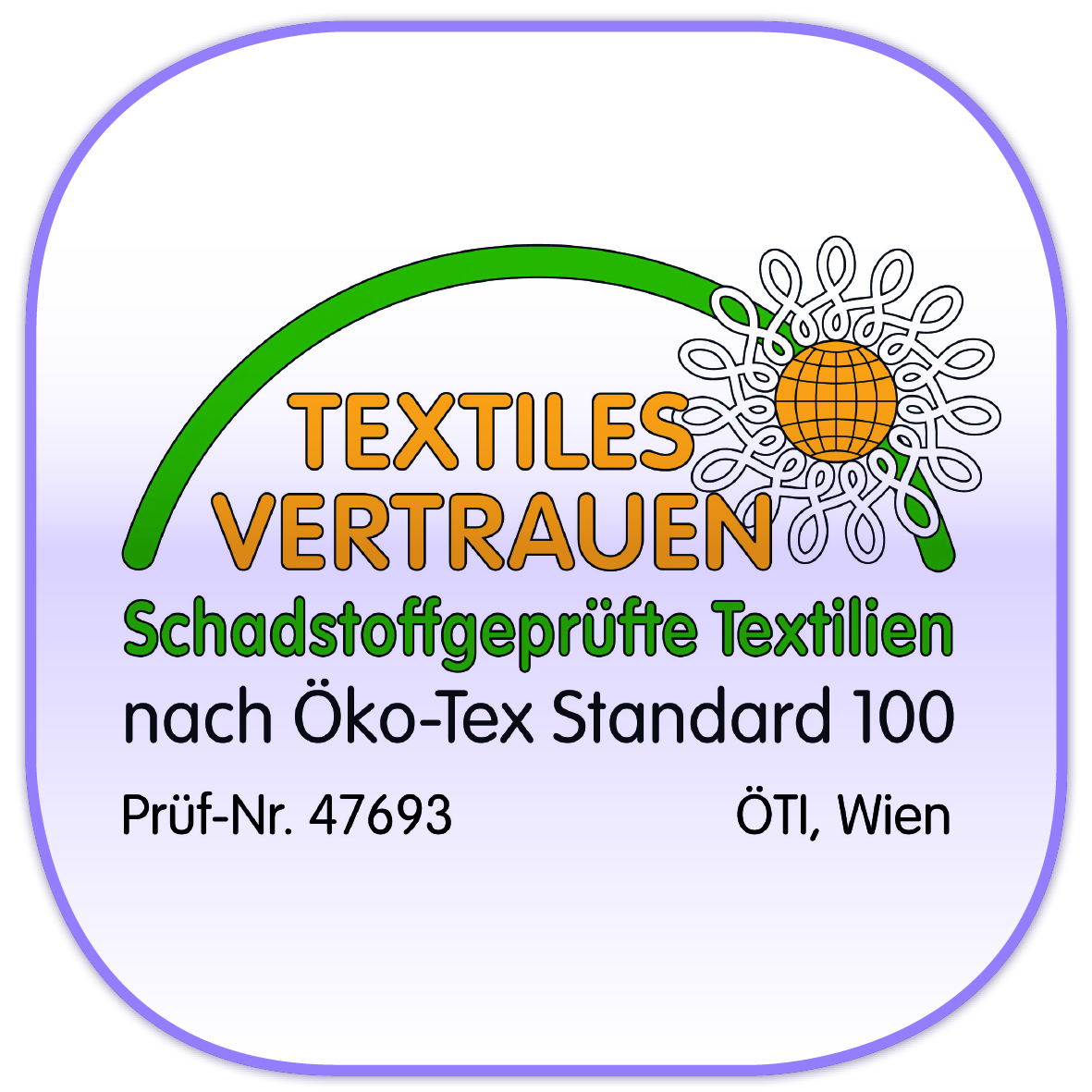 Siegel TEXTILES VERTRAUEN – Öko-Tex: die gesamt Matratze ist Öko-Tex Standard 100, Klasse 1 für Babys, zertifiziert.