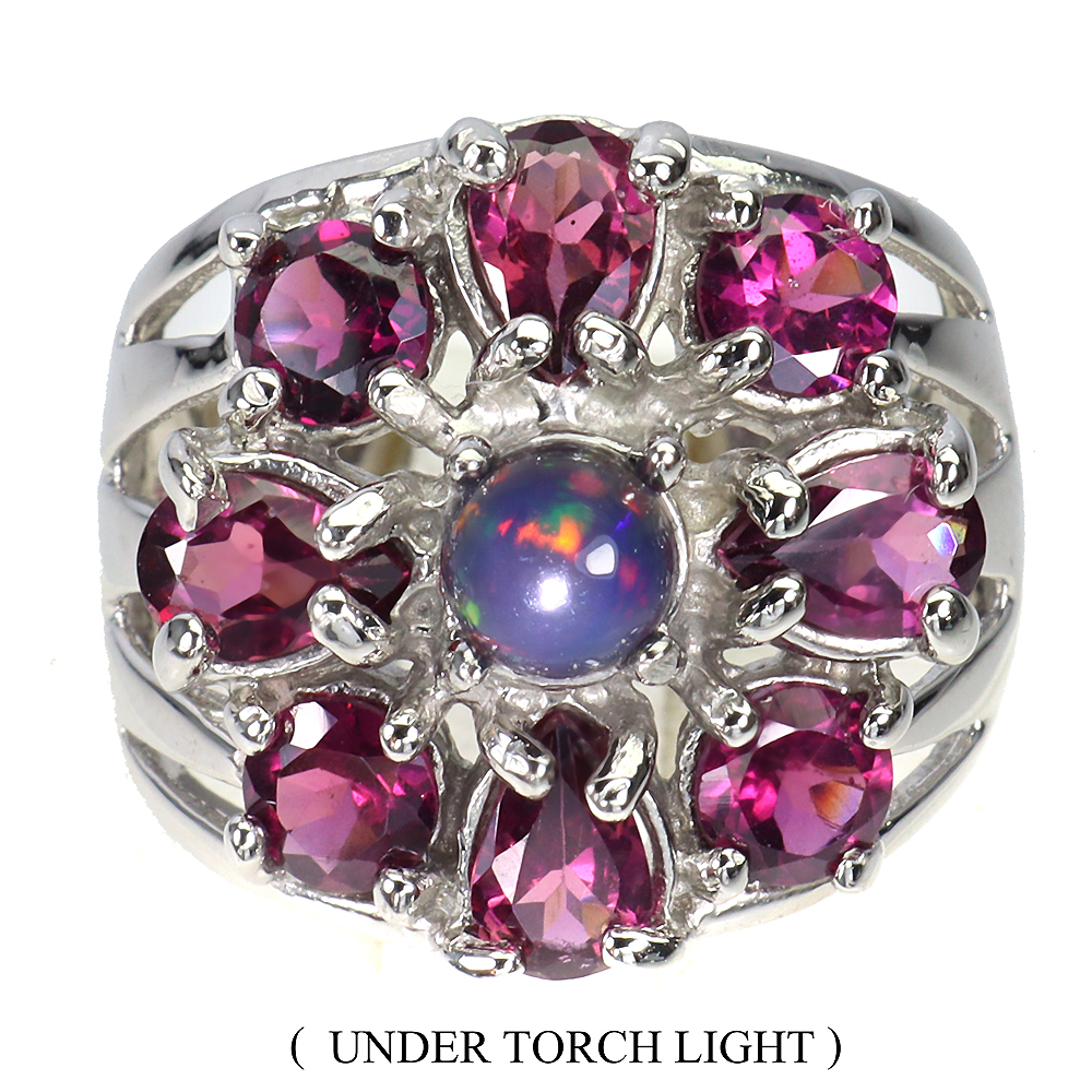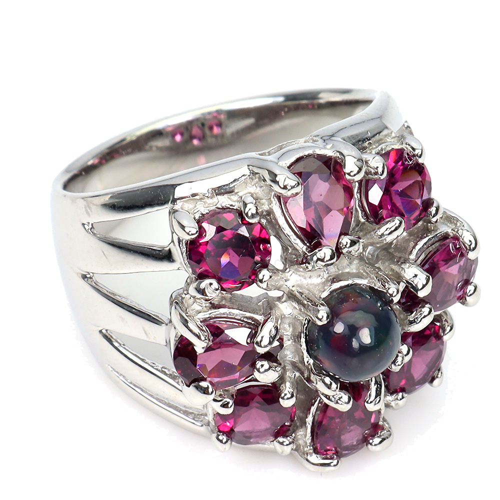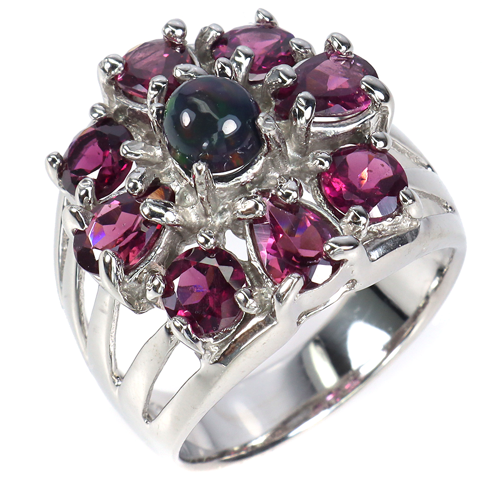 925 Sterling Silver Ring Round Black Opal Rhodolite Natural Gemstone jewelry Sz 8