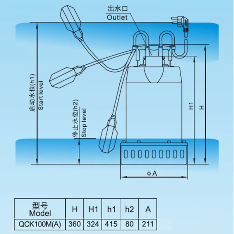 304 stainless steel submersible pump sewage pump 220V basement sewage pump automatic pumping pump