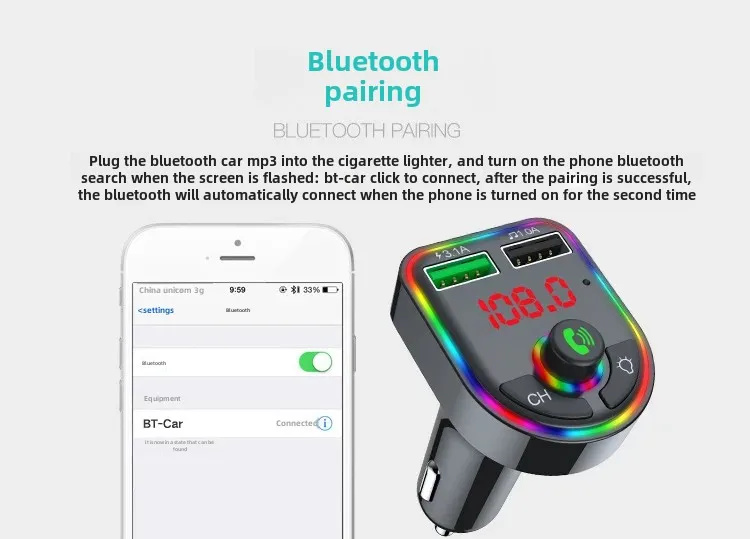 • Plug and Play Design :The F6 car MP3 player boasts a plug and play design, making it easy to connect and enjoy your favorite tunes without any hassle.