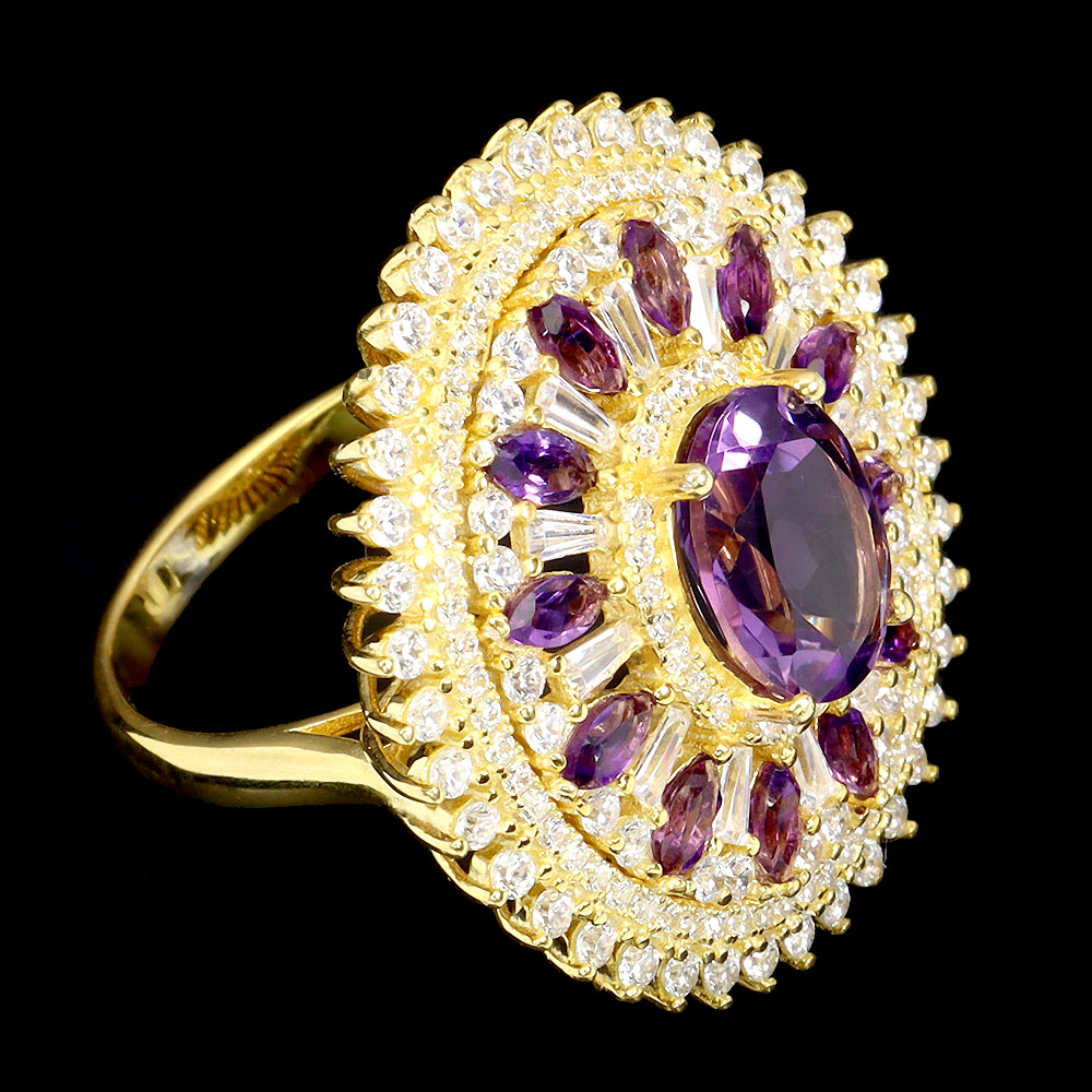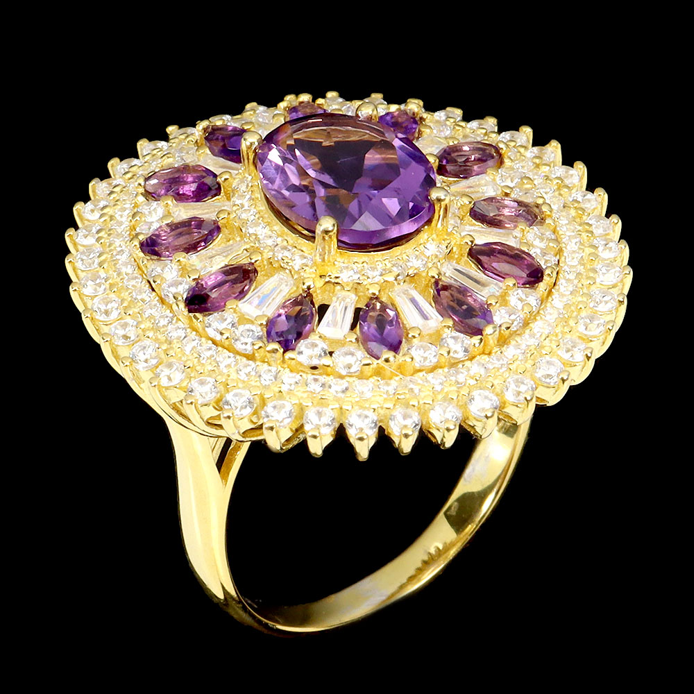 925 Sterling Silver Ring Pear Amethyst Emerald Rhodolite Tourmaline Gemstone