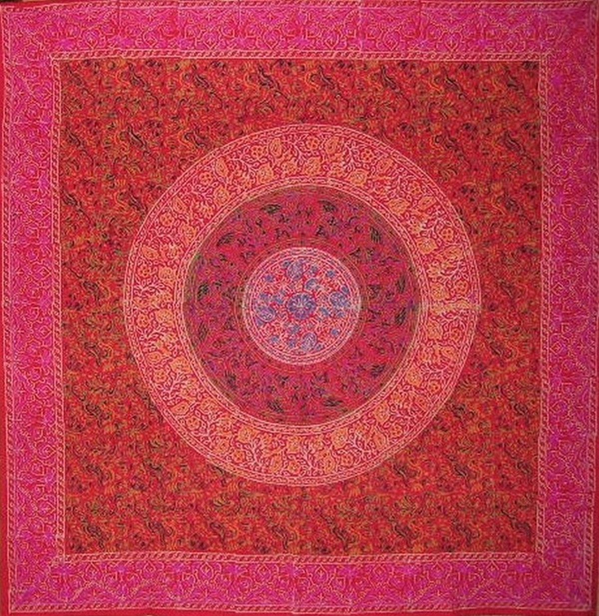 TABLECLOTH-SQUARE ~ Gorgeous Sanganeer Block Print tablecloth. Made of 100% quality cotton and measures approximately 60 X 60 inches. Background color is bright red with green, tangerine, fuchsia, black and tan accenting colors. They are color fast and can be machine washed separately on cool/gentle and tumble dried. Hand block printing on textiles refers to the technique by which carved wooden blocks dipped in dye are repeatedly pressed along a length of cloth to create a repeated pattern. What makes this technique unique is the fact that the design has to be first carved onto the wooden block by hand, and then executed on the fabric. The block printed textiles of India became famous in the 16th and 17th centuries in Europe when the East India Company began to export them in bulk. The block print designs created centuries ago remain ever popular through out many cultures around the world today. This lovely tablecloth will accommodate many styles of decor needs and will add a unique quality to your dining experience. Many of our tablecloths have matching placemats and napkins that can be purchased individually. You will love the rich color and quality of this Sanganeer Block Print tablecloth. Can be used for: